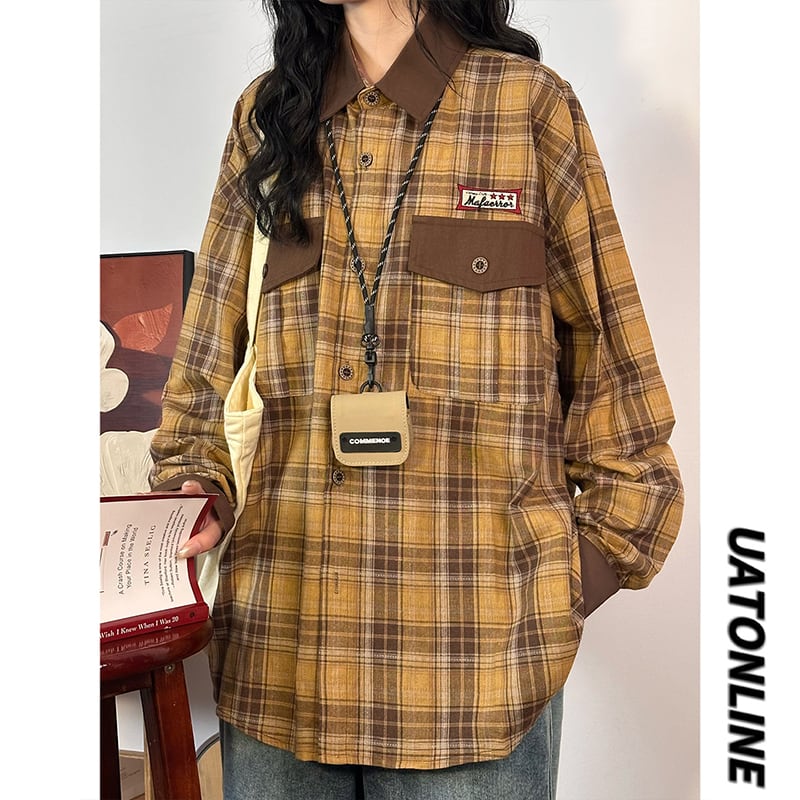 ♥ビンテージなチェック柄!【UATONLINEシリーズ】★シャツ★ ユニセックス 2color 長袖シャツ トップス 切り替え チェック柄