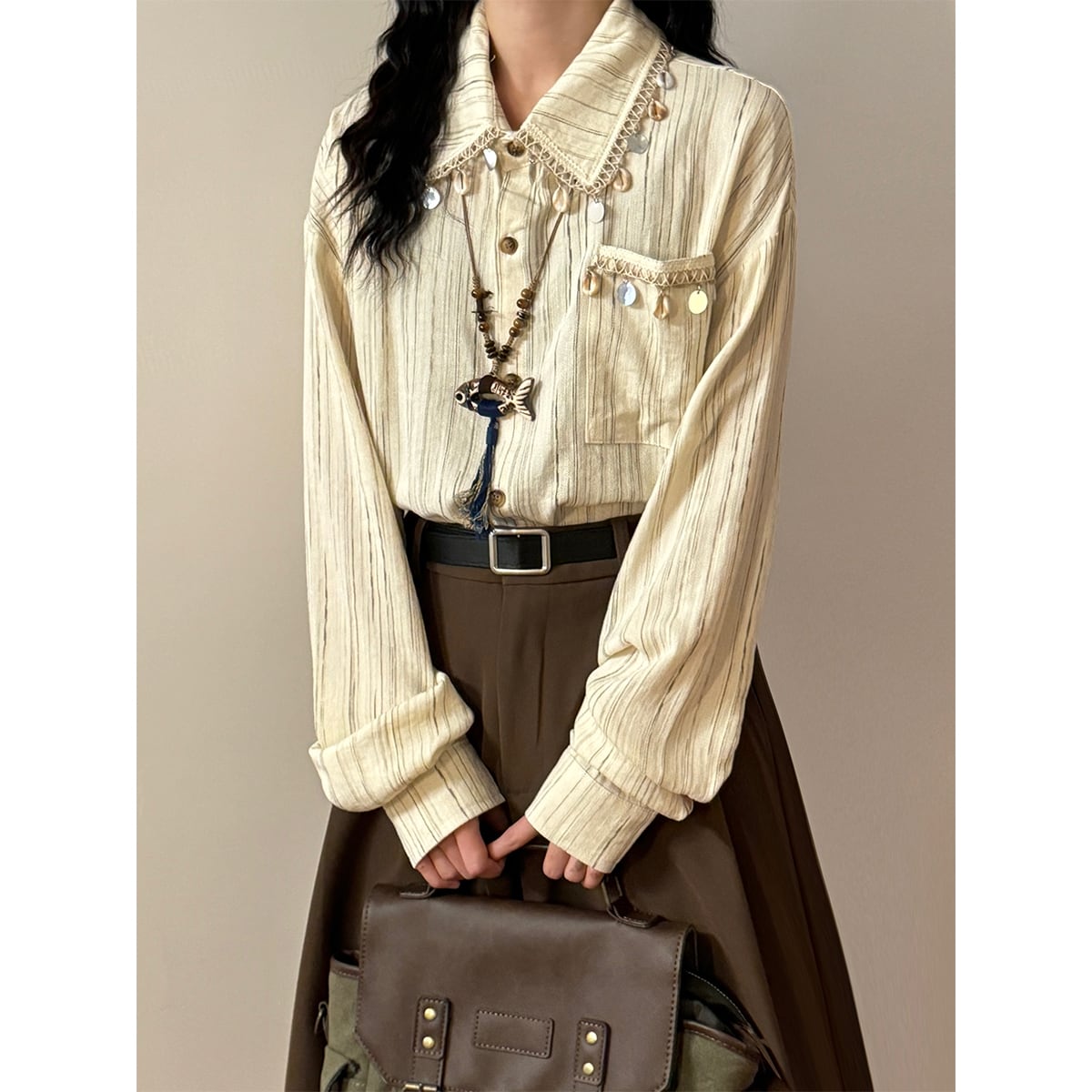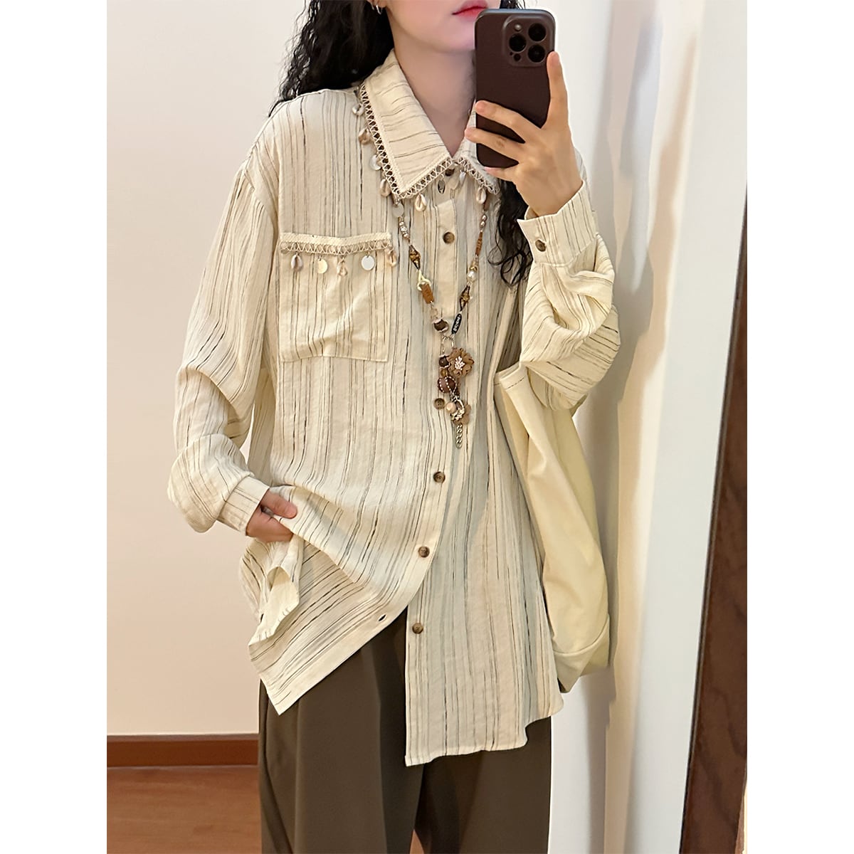 ❀スペキュラーとストライプの共演!【UATONLINEシリーズ】★シャツ★ ユニセックス 2color トップス 縦縞 縞模様 スパンコール フリンジ