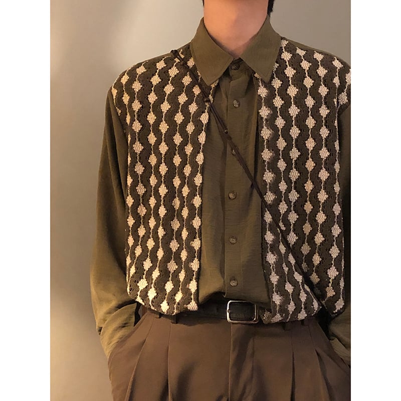 ♥フェイクツーウェイに、透かし編み!【UATONLINEシリーズ】★シャツ★ ユニセックス 2color 長袖シャツ トップス フェイクレイヤード