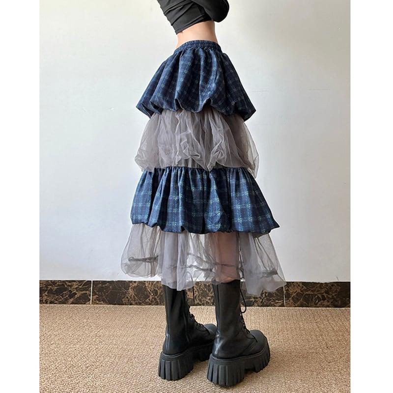 ☘︎透け感ネット拼接で、大人可愛い段替りスカート!【Gagaoptシリーズ】★スカート★ 切り替え ボトムス レディース 合わせやすい 合わせやすい