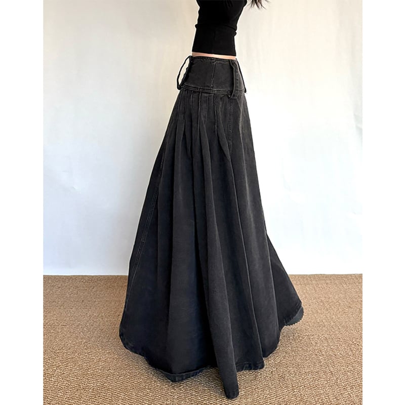 ☘︎秋冬の定番 ブラックデニム!【Gagaoptシリーズ】★スカート★ Aライン ロングスカート ボトムス レディース