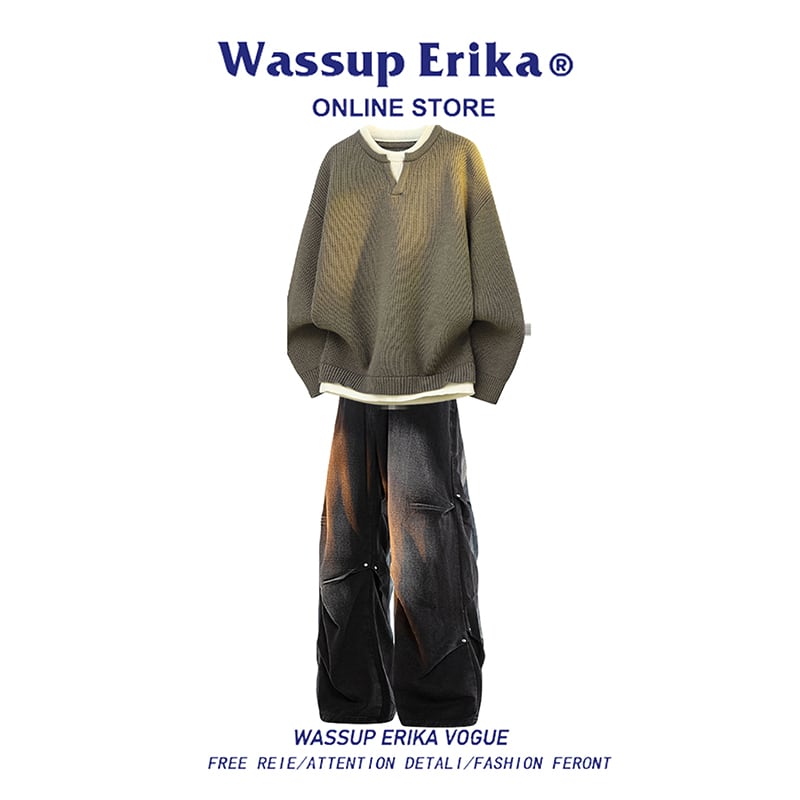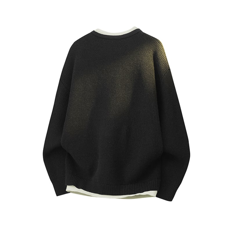 ☄ツーウェイ Vネックニット!【WSシリーズ】★セーター★ ユニセックス 4color ニットトップス フェイクレイヤード