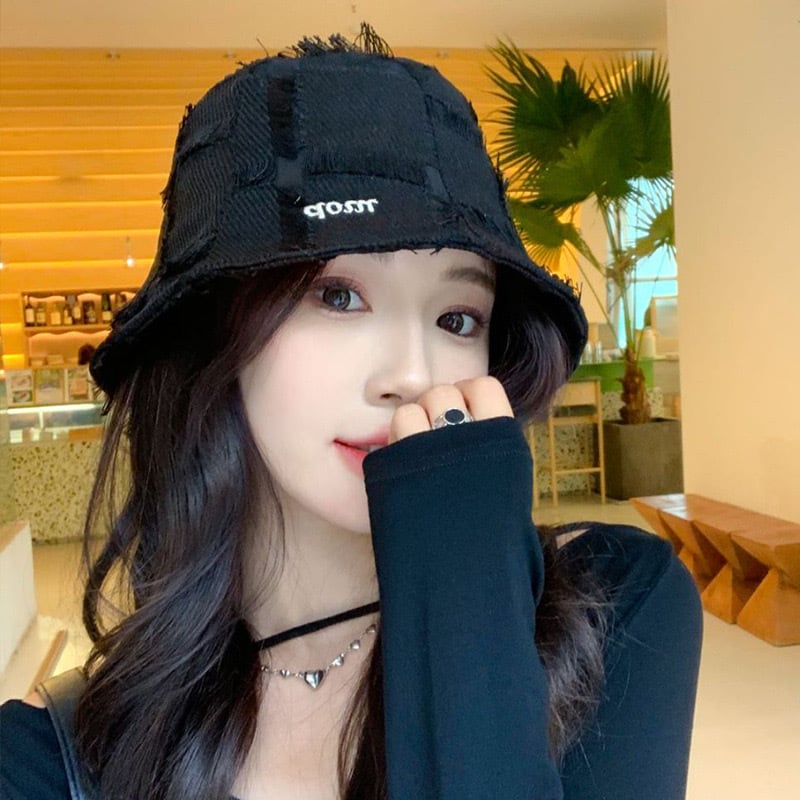 ☠フレンジングチェックのバケットハット!【!MMXW!シリーズ】★帽子★ 2color 小顔見えハット わざとほつれ