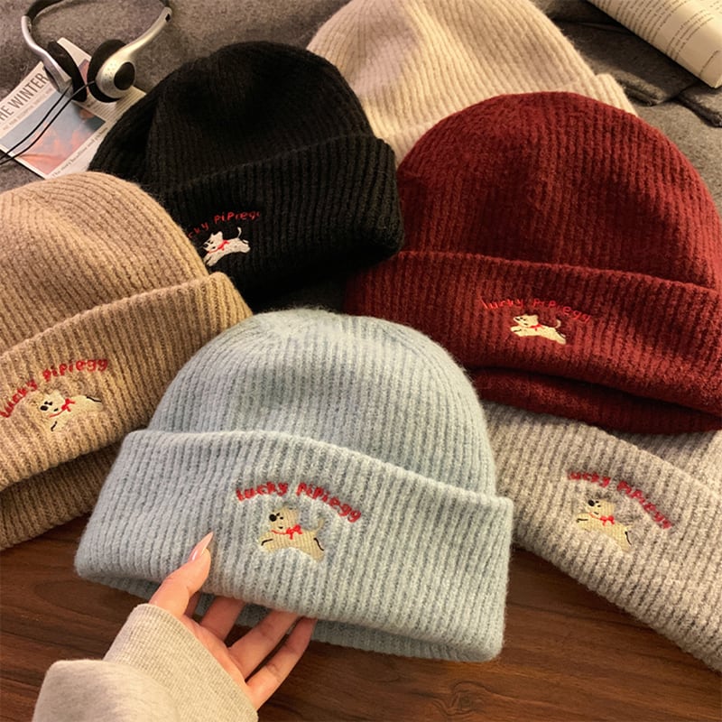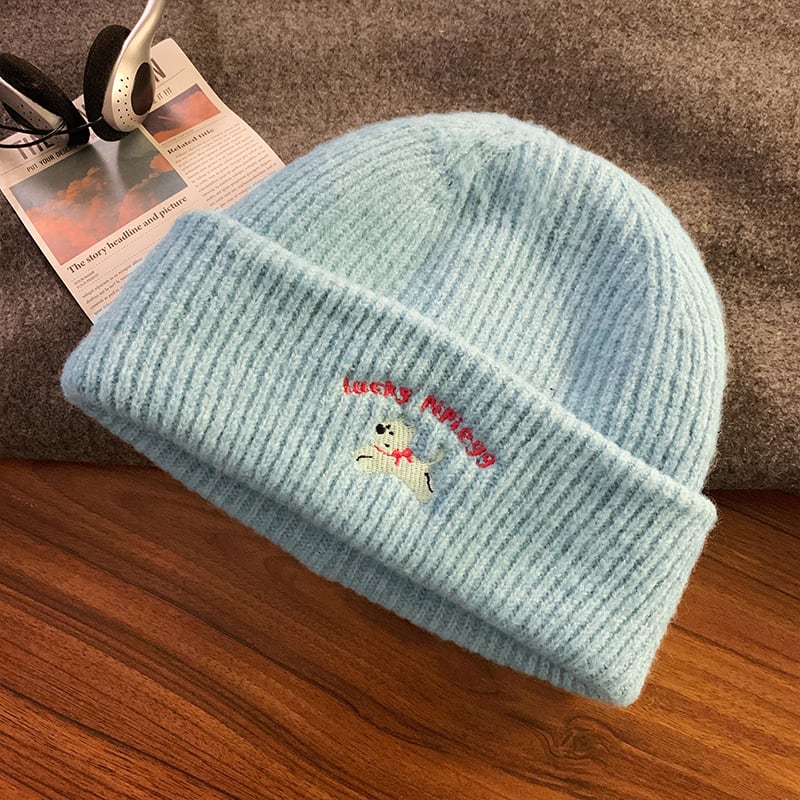☠犬の刺繍 ニット帽!【WXFシリーズ】★帽子★ 6color ハット ぼうし アクセサリー オールマイティーハット