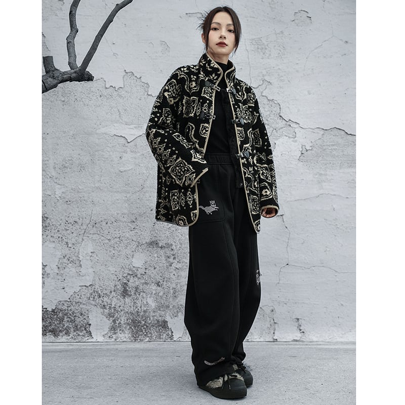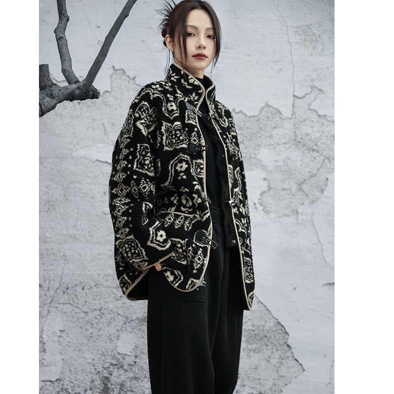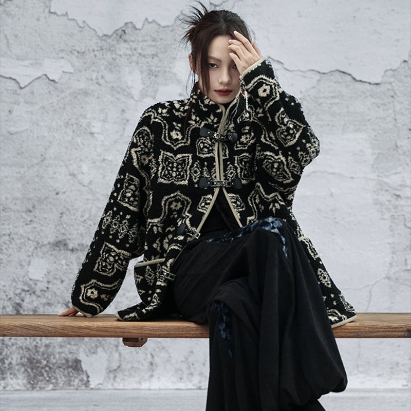 ✿冬のしゃれ着 モダンビンテージな一枚!【大青龍肆シリーズ】★チャイナ風アウター★ 裏起毛 冬用コート 厚て 暖か エスニック風