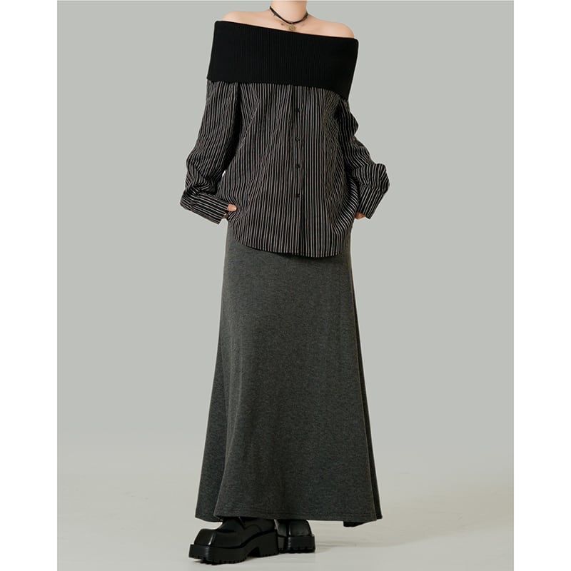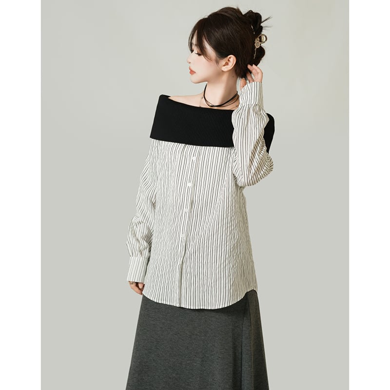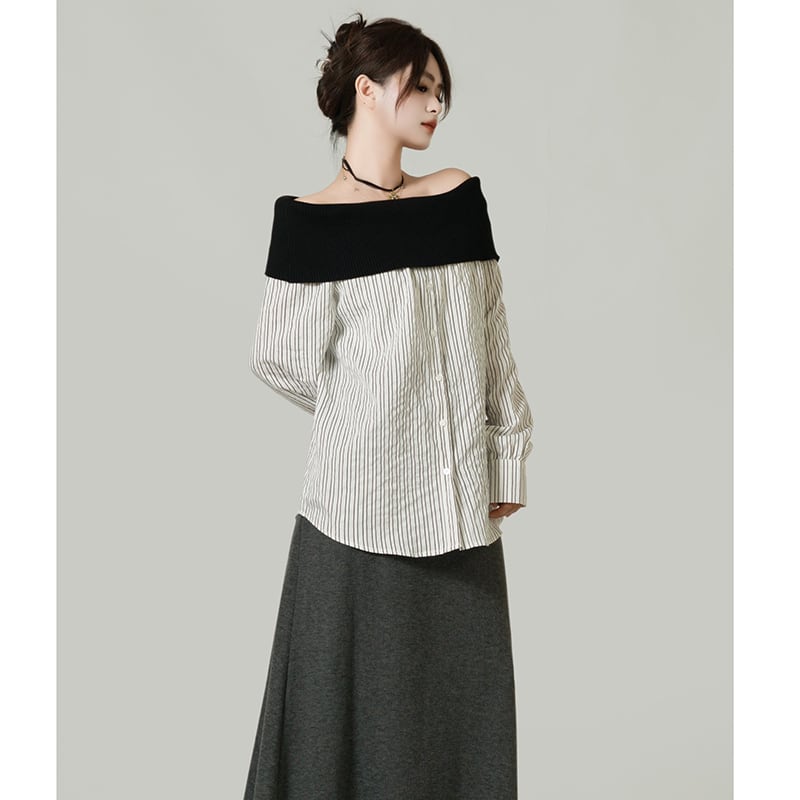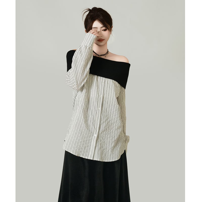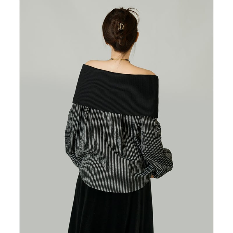 ☙ストライプオフショルダー!【ANHEIDARKシリーズ】★セーター★ トップス 2color 配色 縦縞 縞模様