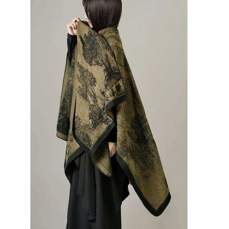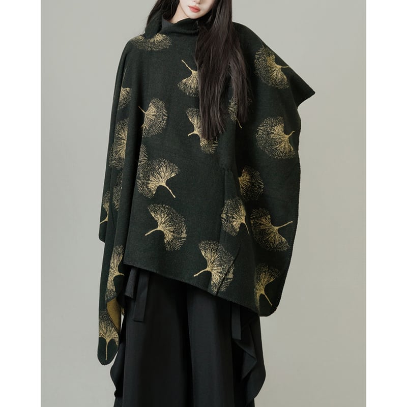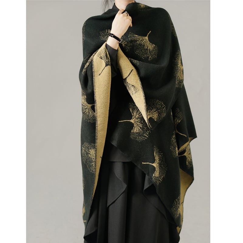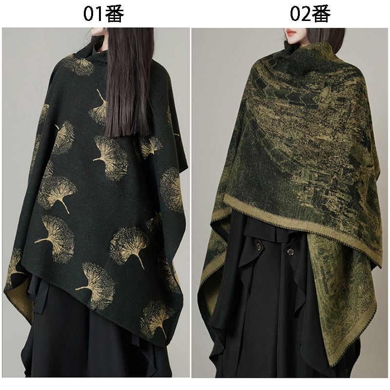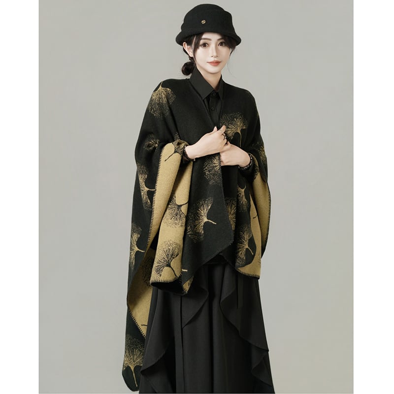 இイチョウの葉のエスニックケープ!【ANHEIDARKシリーズ】★チャイナ風マフラー ★ 2color ショール 大きい