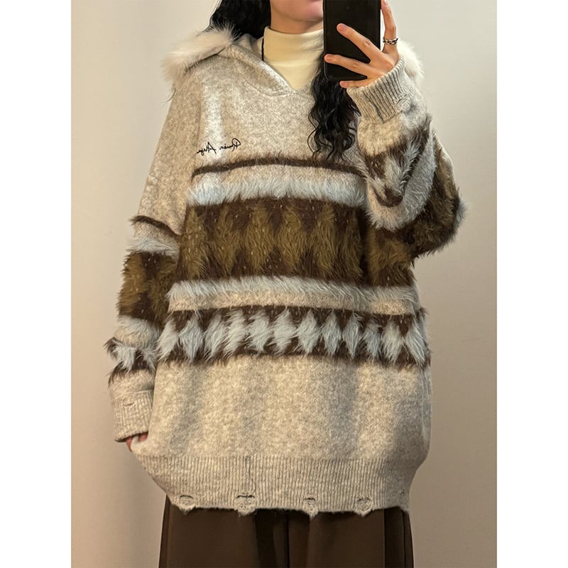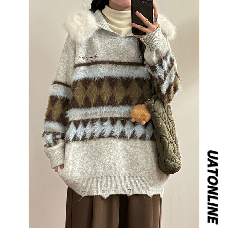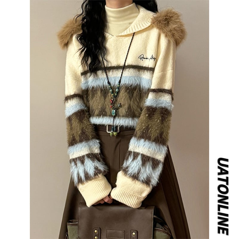 ♥バイカラーレトロプルオーバー!【UATONLINEシリーズ】★セーター★ ユニセックス 2color ニットトップス