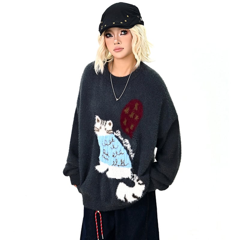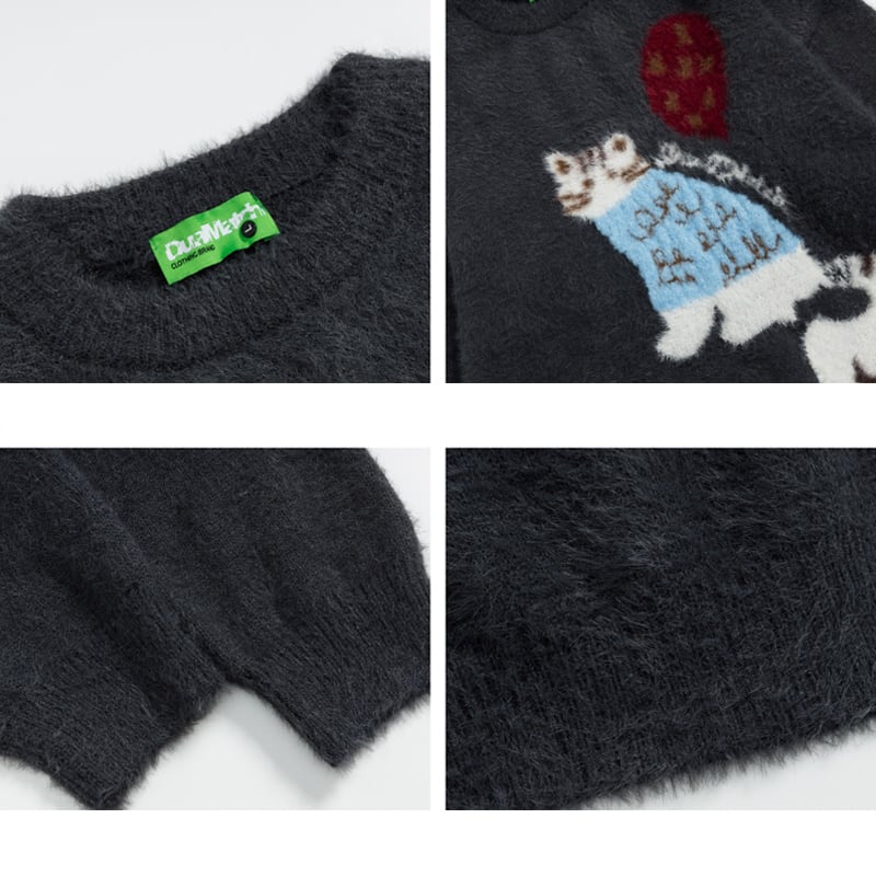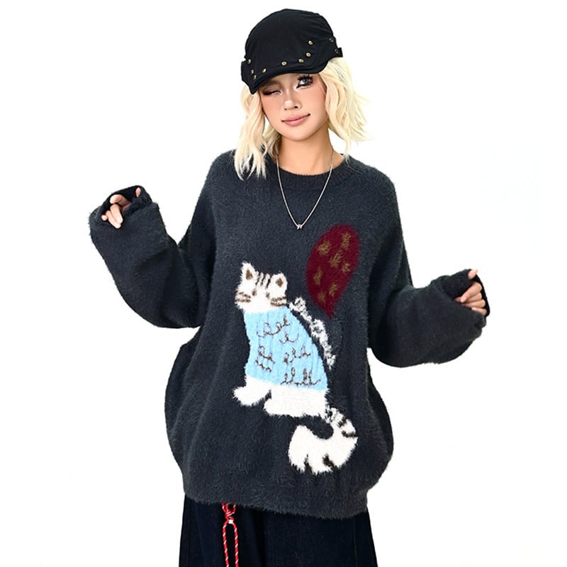 ♥猫モチーフのもふもふニット!【MOISHE TIDE シリーズ】★セーター★ ユニセックス 2color ニットトップス 猫 可愛い