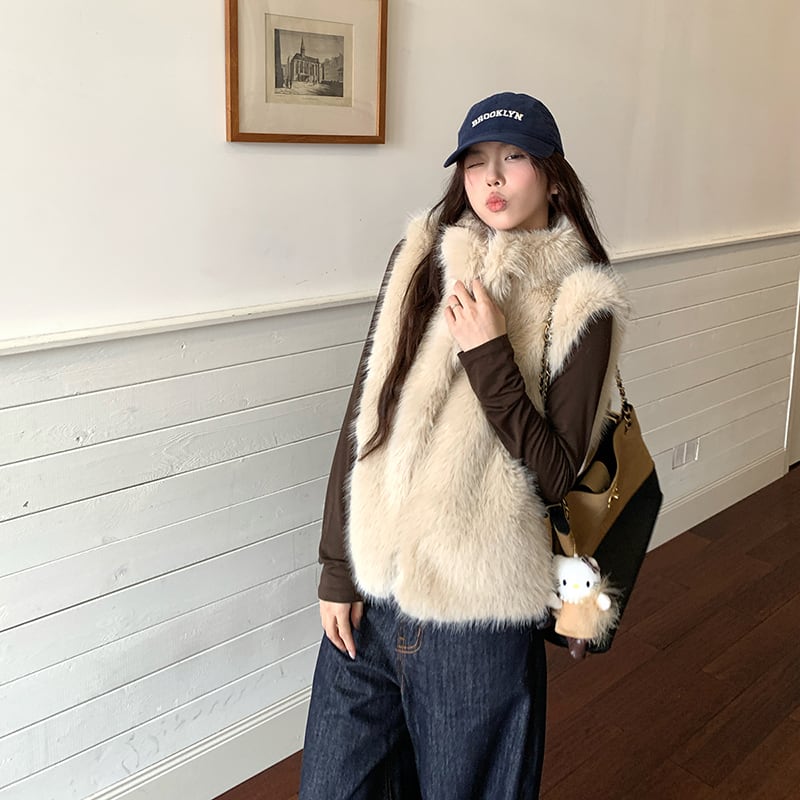 ৡモコモコ あったかベスト!【KEKELIシリーズ】★ベスト★ 3color ふかふか アウター あったか ハイネック