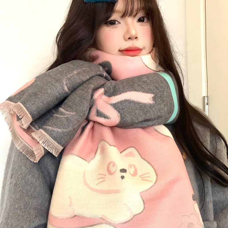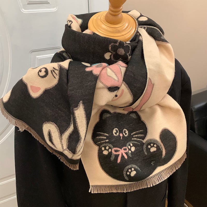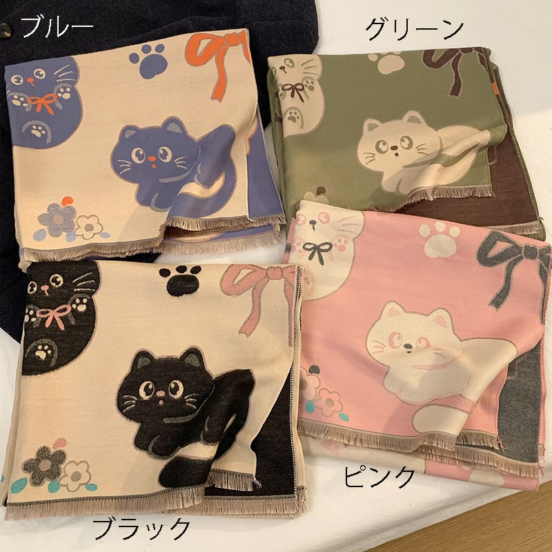 ✿表裏で楽しめる、猫柄マフラーストール!【BAOYINFEIシリーズ】★マフラー★ 4color 猫 ねこ ネコ 小物 飾り物 アクセサリー