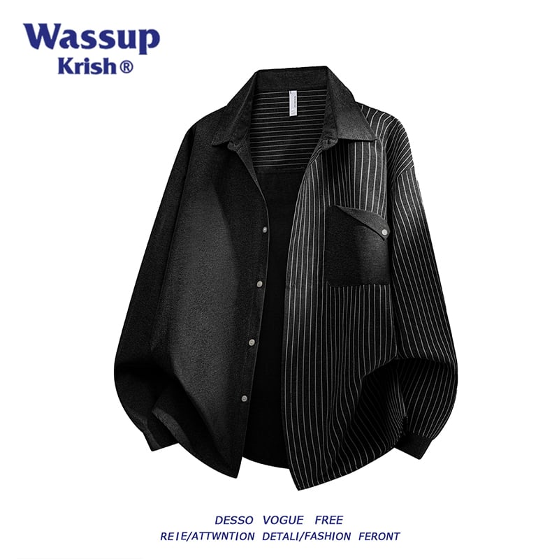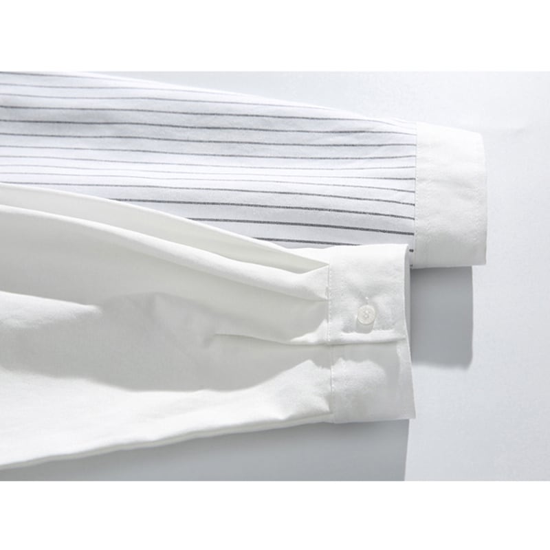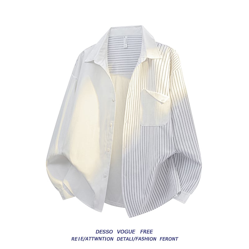 ☀ブラックストライプ 拼接ぎシャツ!【WSシリーズ】★シャツ★ ユニセックス 3color トップス 縦縞 縞模様