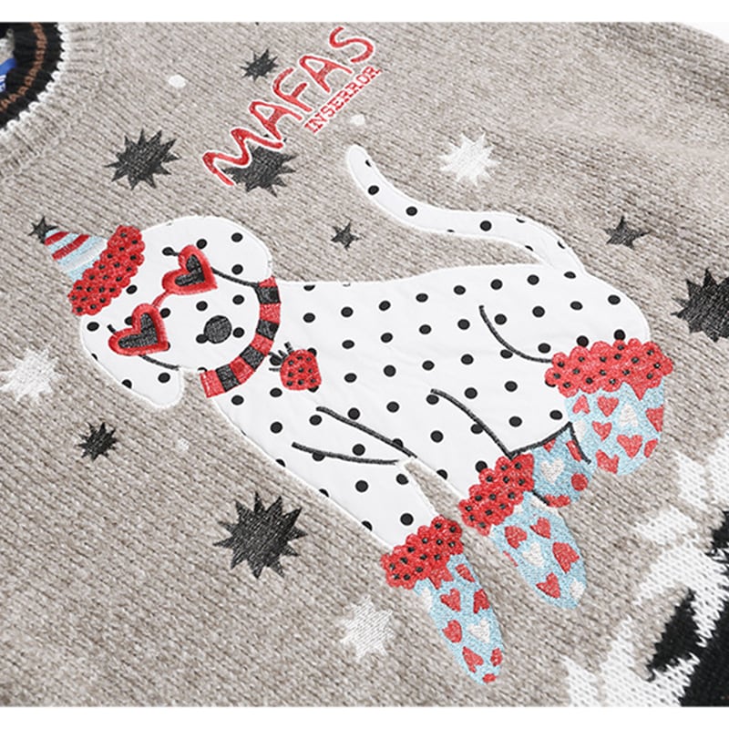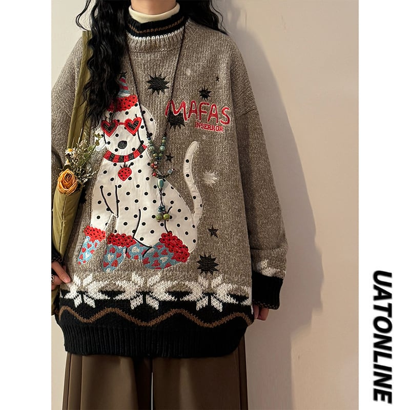 ♥ダルメシアン ジャカードニット!【UATONLINEシリーズ】★セーター★ ユニセックス ニットトップス 犬 配色 可愛い