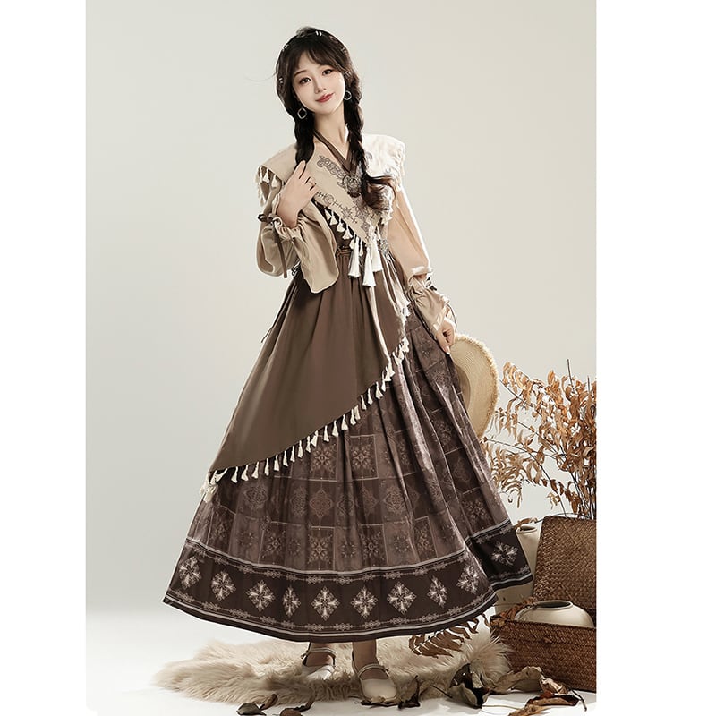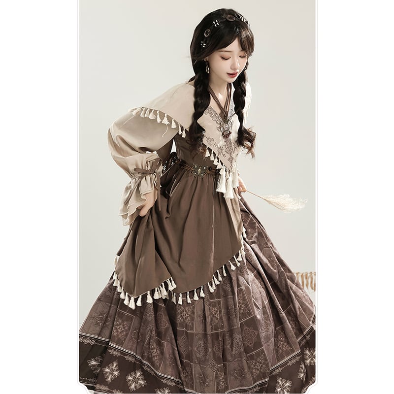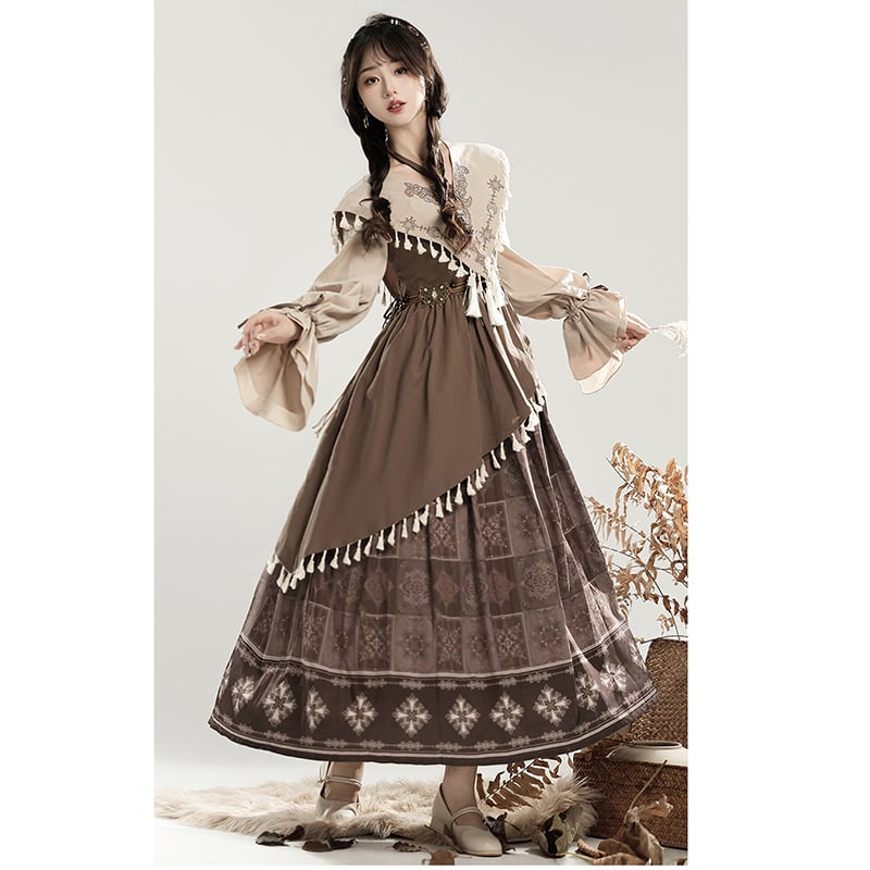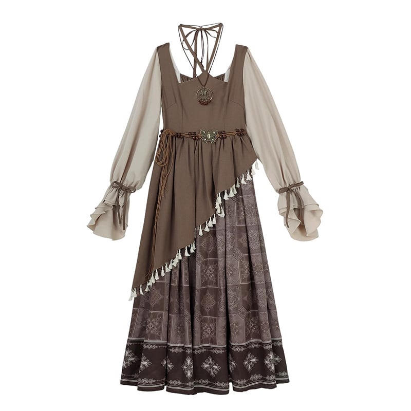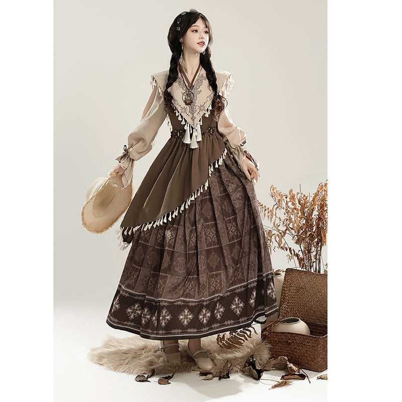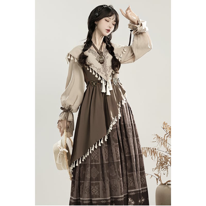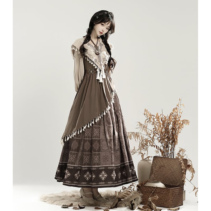 ❤モダン中華風ワンピース!【楓竹---神祕部落シリーズ】★チャイナ風セットアップ★ ワンピース+襟 2点セット 中華服