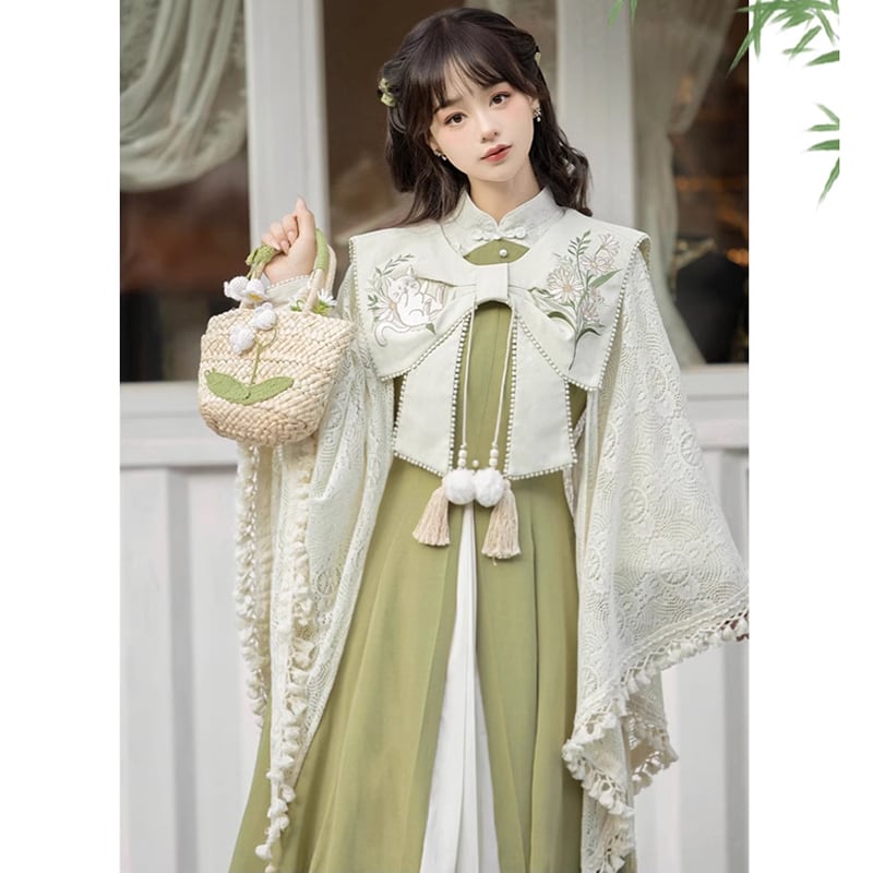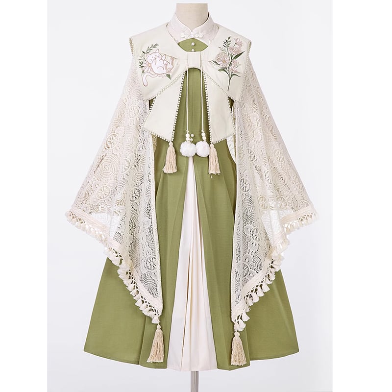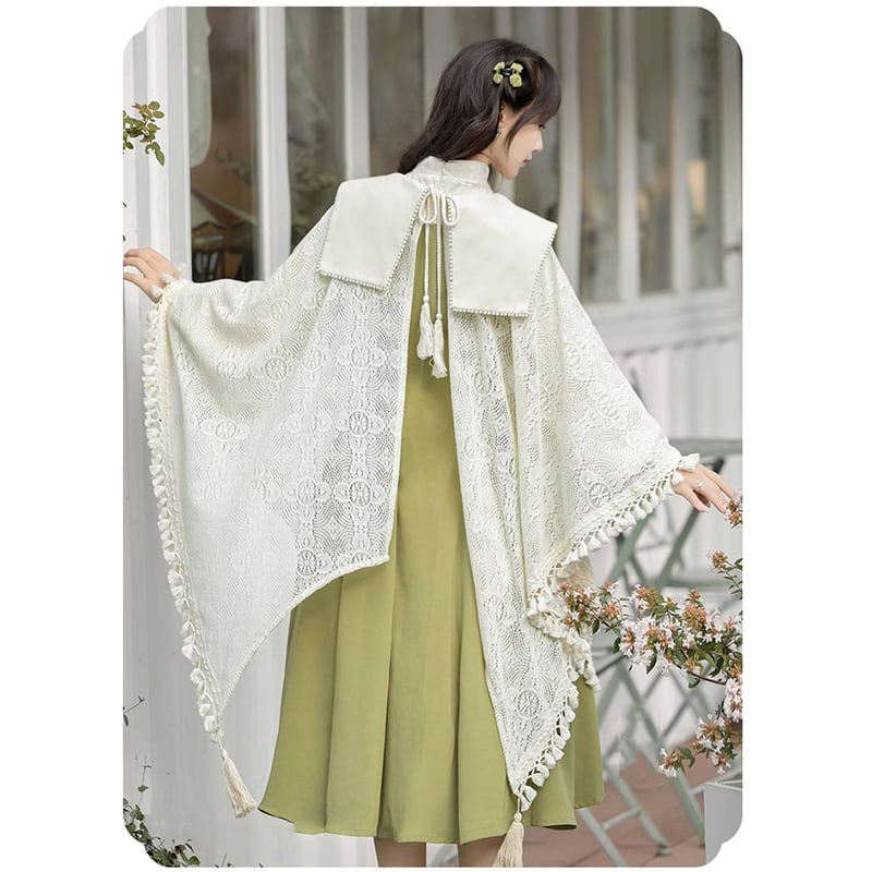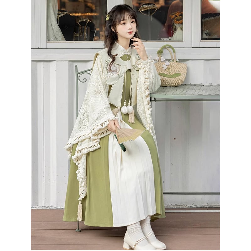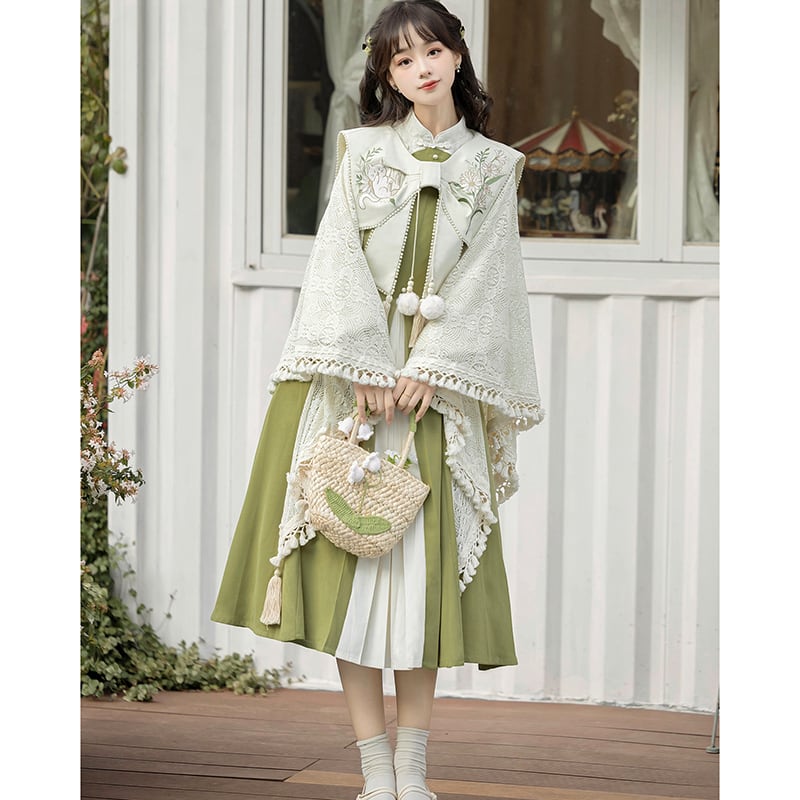 ❤一目惚れチャイナコーデ!【楓竹シリーズ】★チャイナ風セットアップ★ マント+ワンピース 2点セット 中華服 グリーン 緑