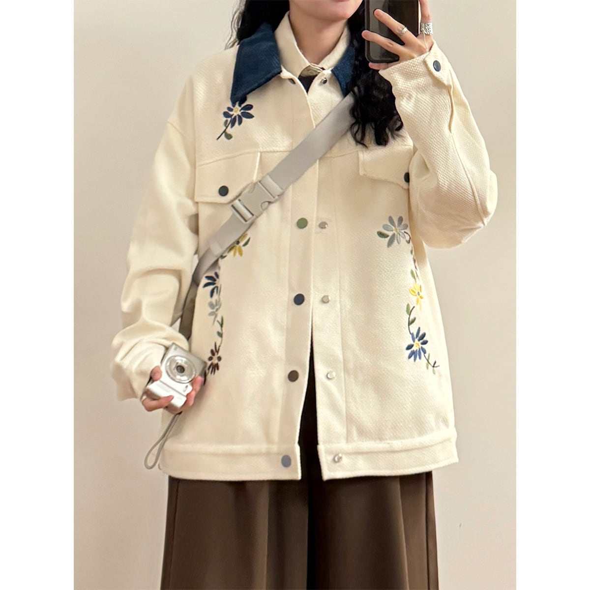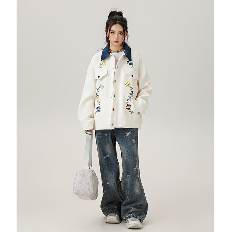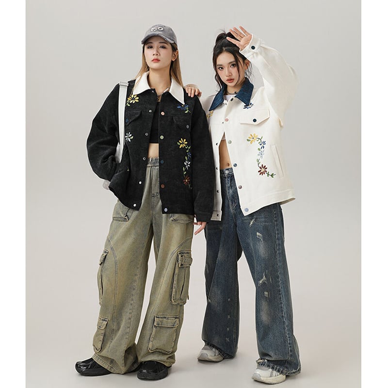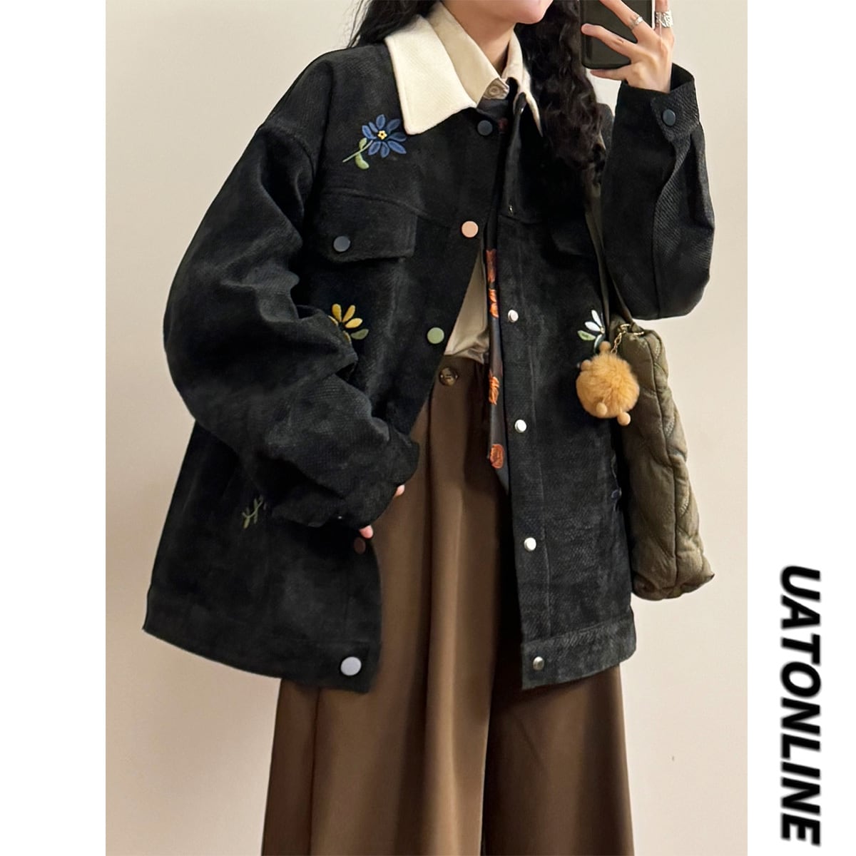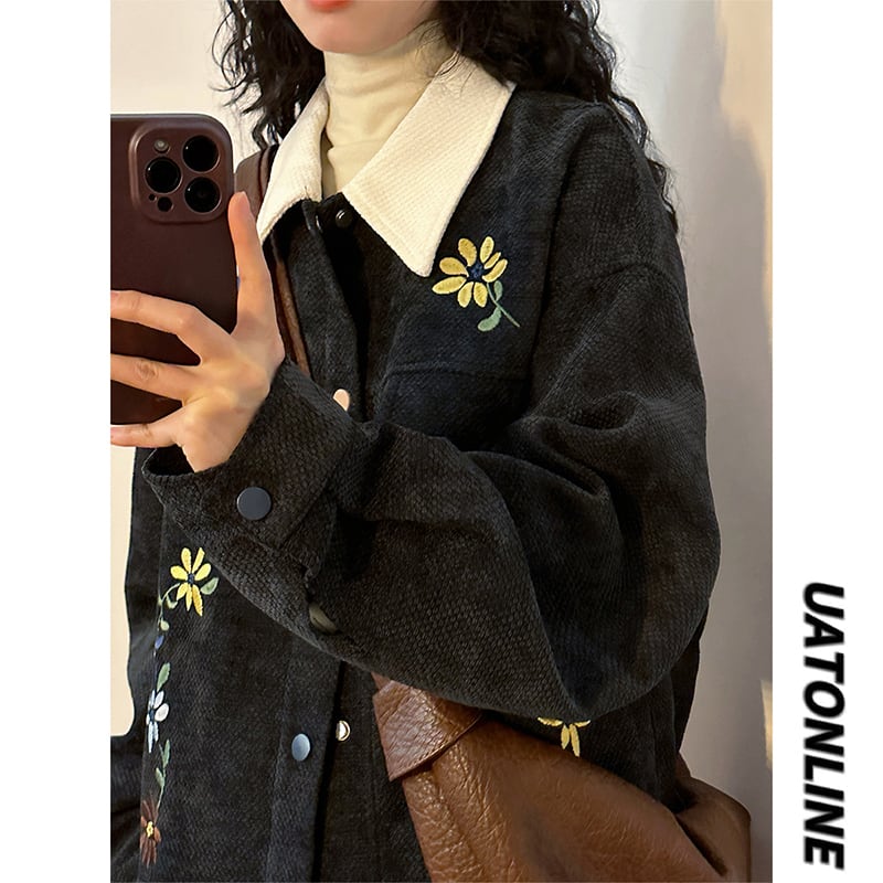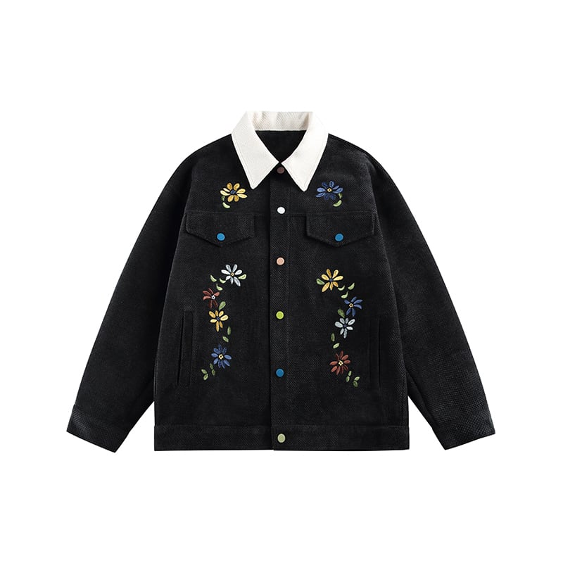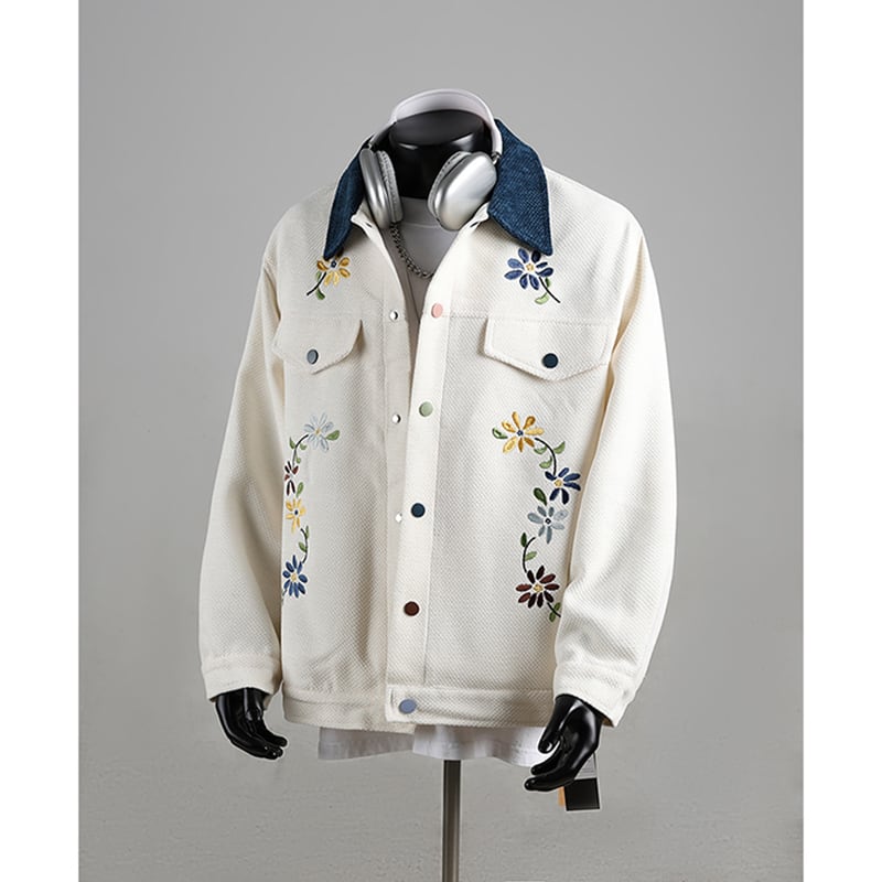 ✿新しい私の定番に!【UATONLINEシリーズ】★アウター★ ユニセックス 2color ジャケット 男女兼用 メンズ 刺繍 花柄 配色 カジュアル
