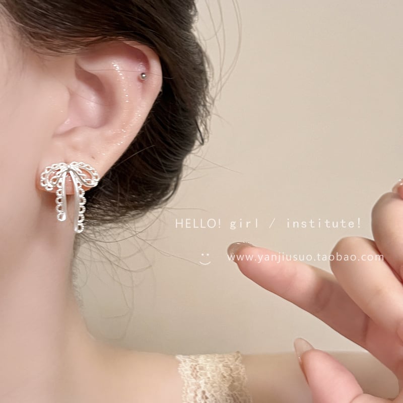 ✿銀のリボン、唯一無二の輝き!【GIRL INSTITUTEシリーズ】★耳飾り★ 可愛い リボン ピアス アクセサリー レディース 小物