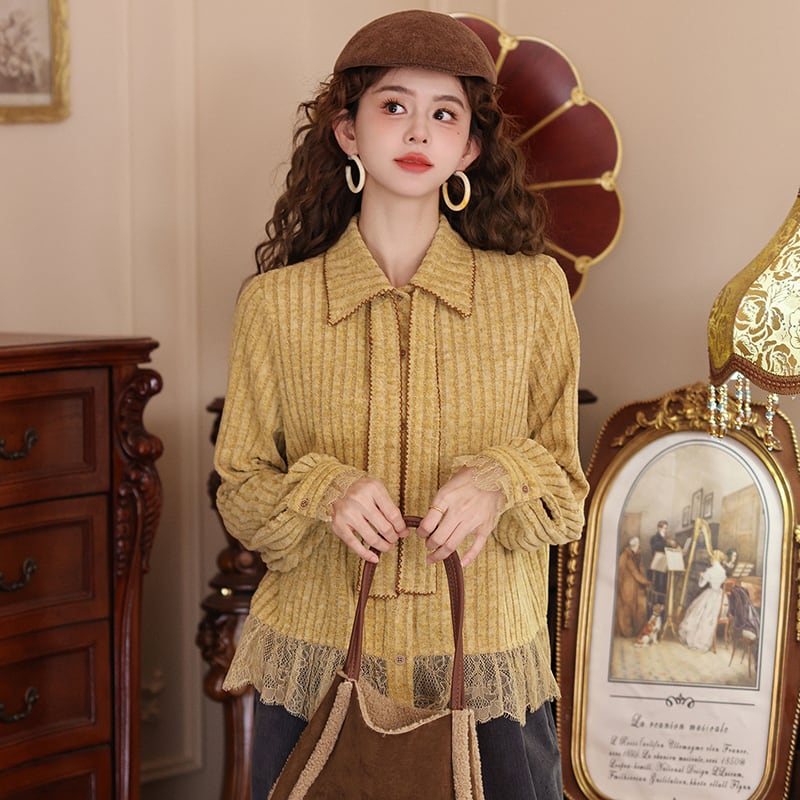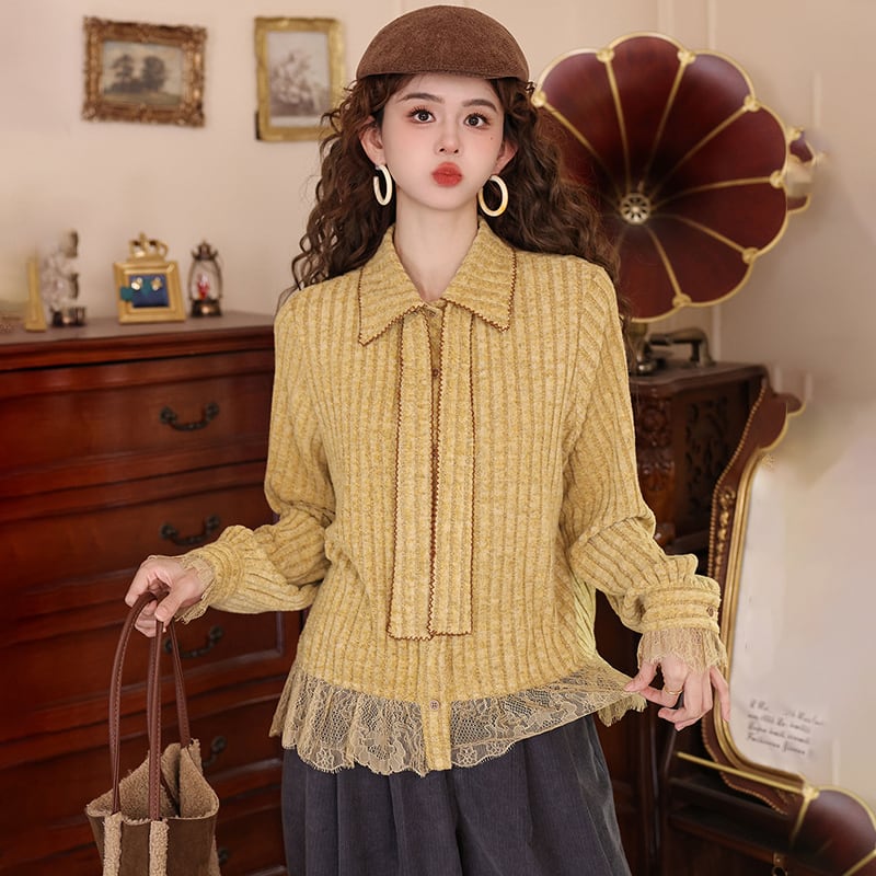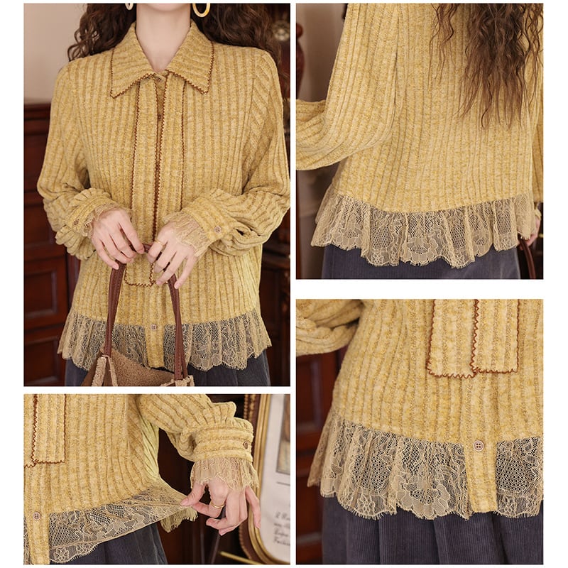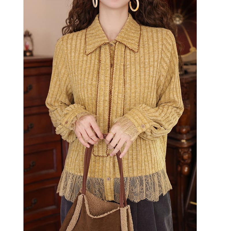 ♥着るだけで、レトロな雰囲気!【CHENDSシリーズ】★シャツ★ トップス 長袖シャツ レディース イエロー 黄