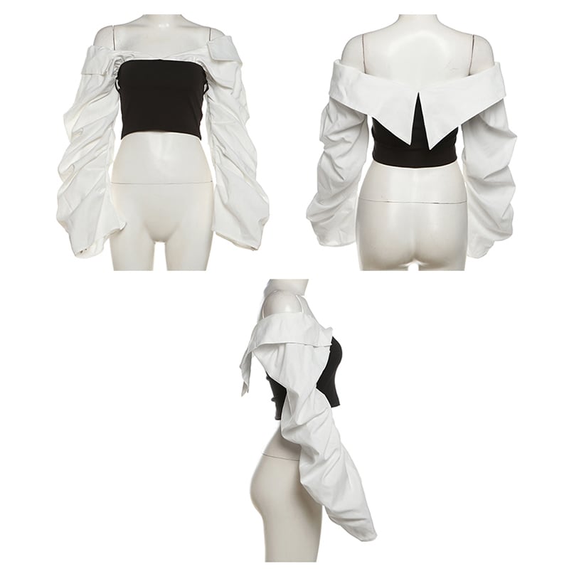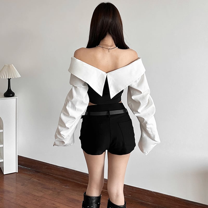 ♥美しい鎖骨、ボートネックのTシャツ!【KLIOUシリーズ】★トップス★ Tシャツ 肩出し セクシー ミニ丈 レディース 配色