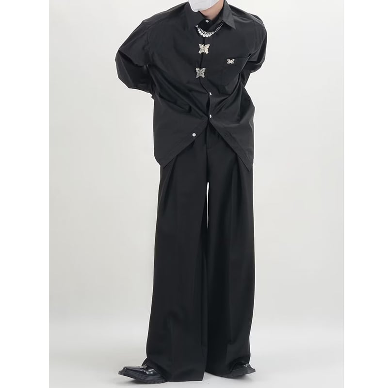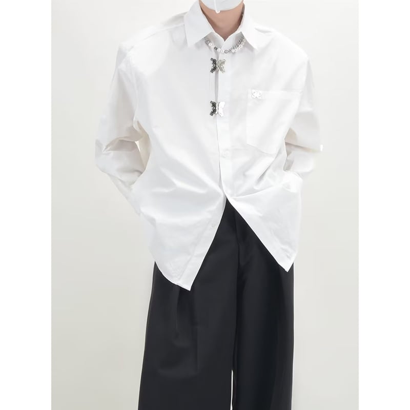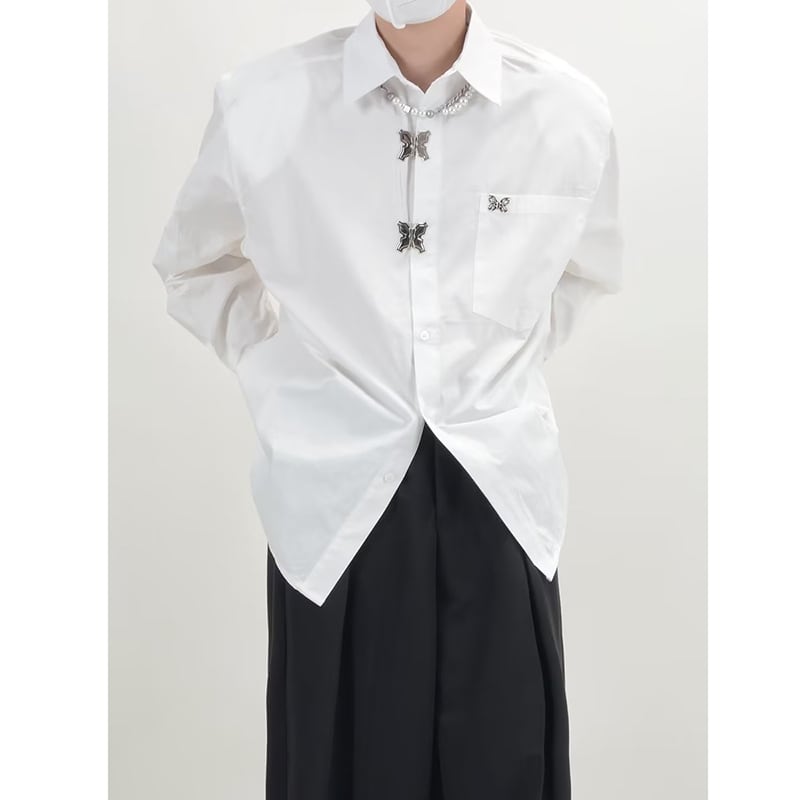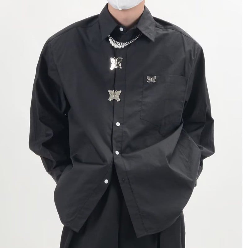 ☀メタルバタフライの、こだわりシャツ!【DIDIAOシリーズ】★シャツ★ ユニセックス トップス 2color 金属ボタン 蝶々