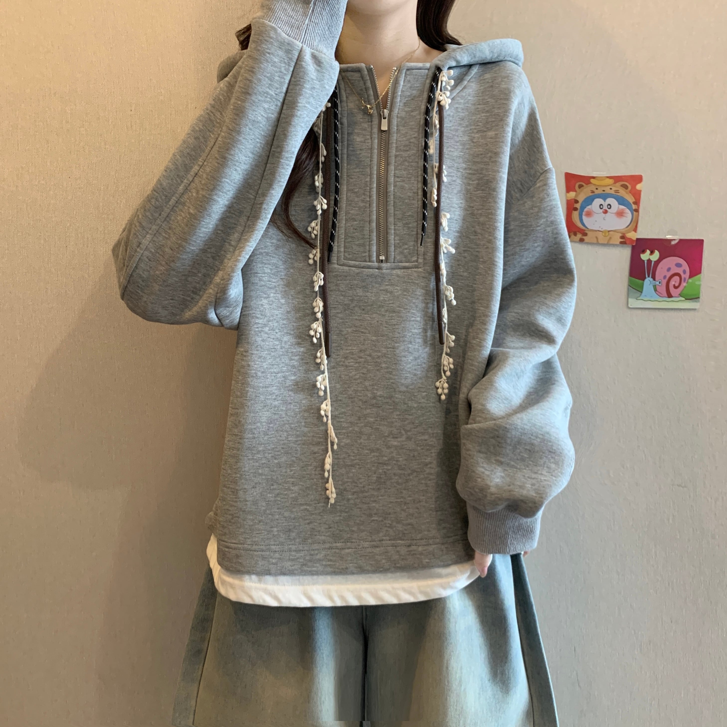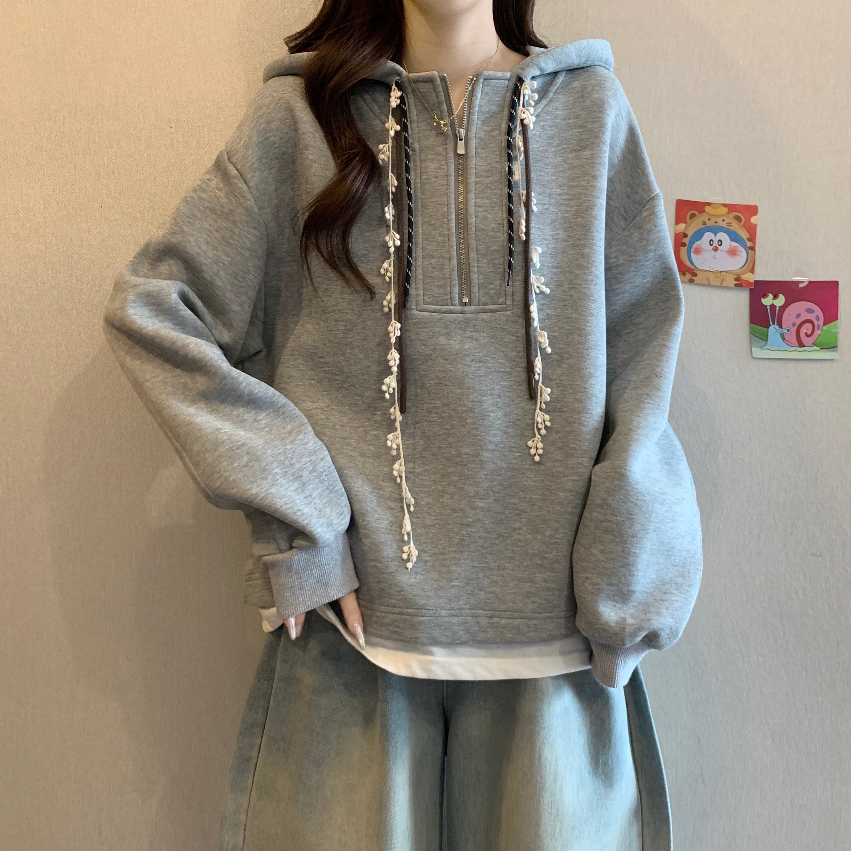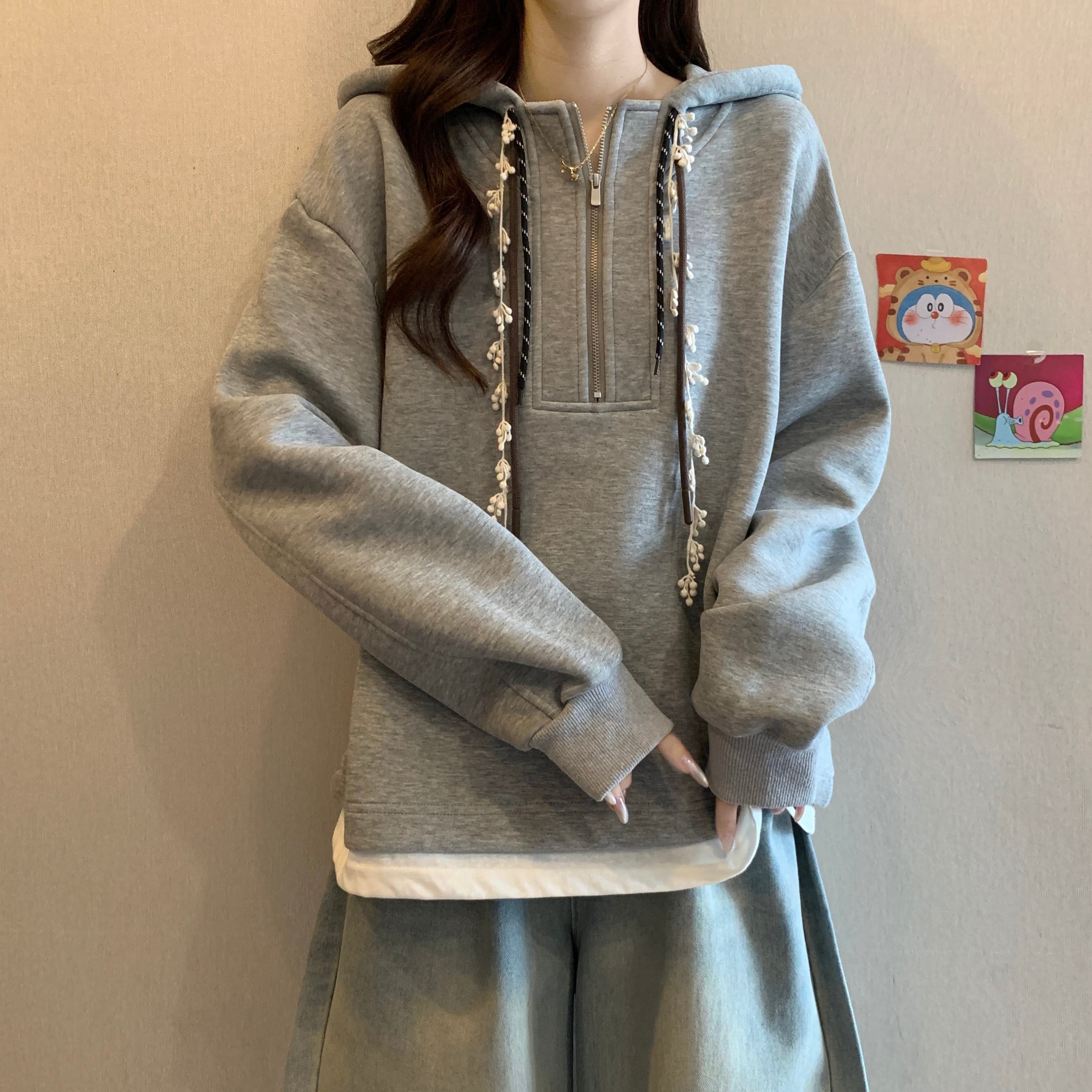 ♥大人可愛いパーカー!【JIGUJIGUシリーズ】★パーカー★ トップス 3color 大きいサイズ ファスナー付き