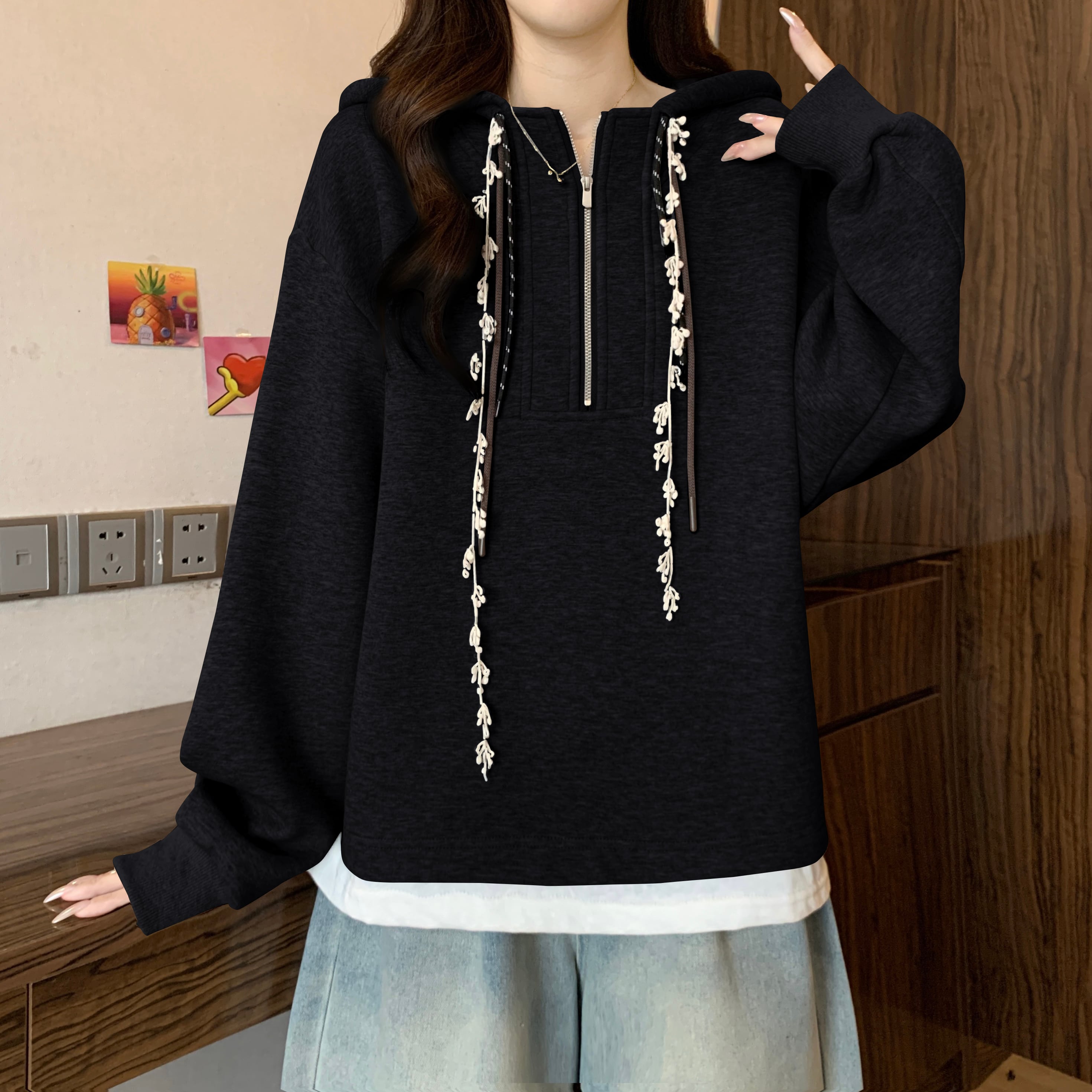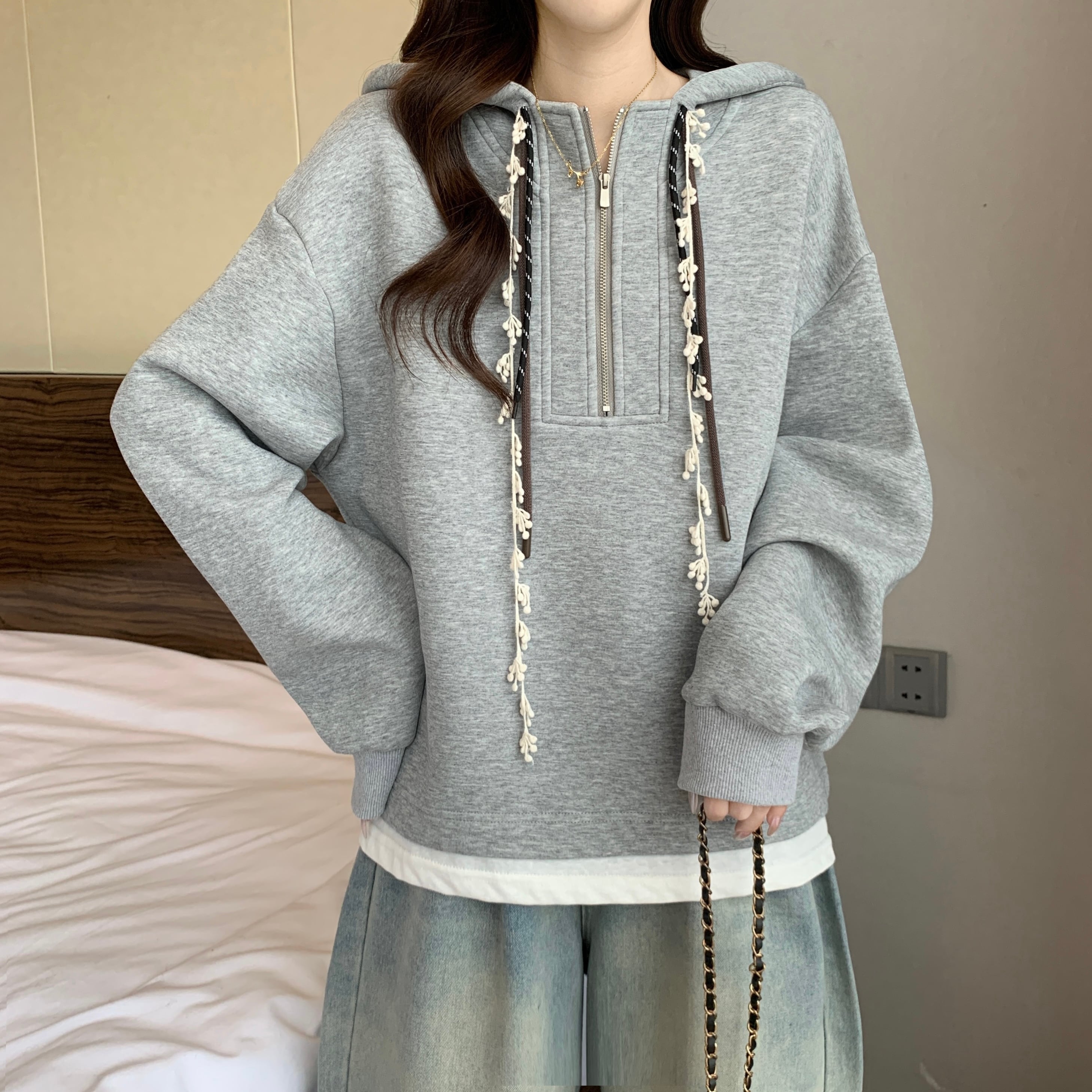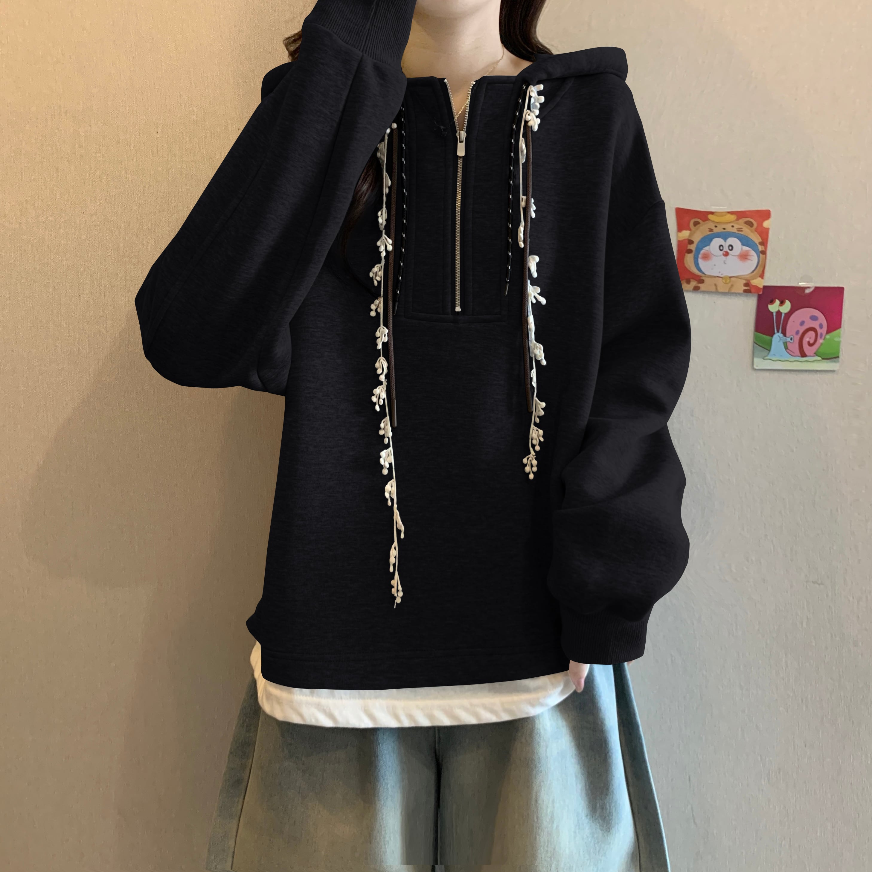 ♥大人可愛いパーカー!【JIGUJIGUシリーズ】★パーカー★ トップス 3color 大きいサイズ ファスナー付き