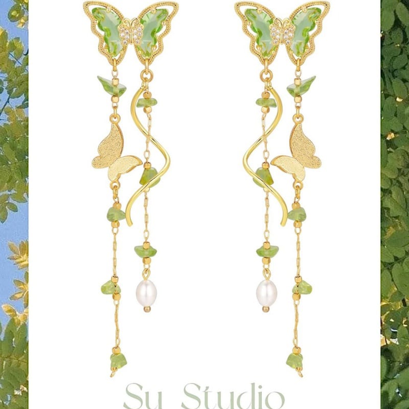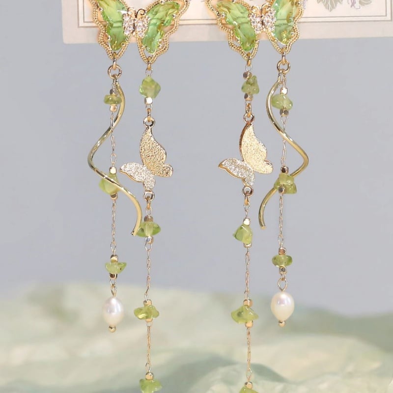 ✿蝶が羽ばたく、優雅なフリンジ!【青野茶蝶シリーズ】★耳飾り★ イヤリングorピアス アクセサリー レディース 小物 デート 蝶々 フリンジ