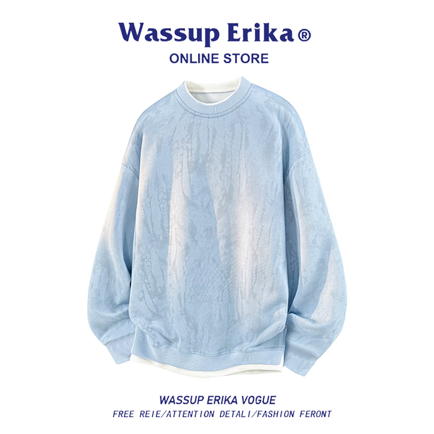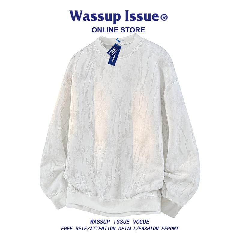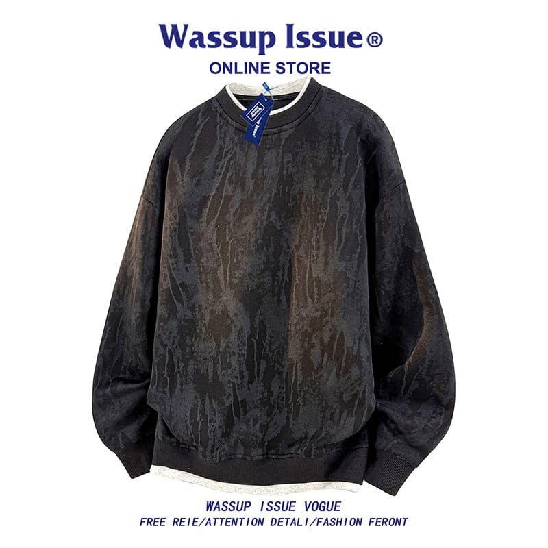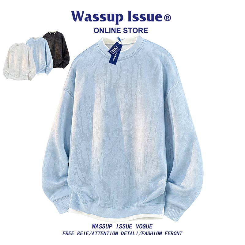 ♥重ね着絞り染めトップス!【WSシリーズ】★トップス★ フェイクレイヤード 3color スウェット ユニセックス メンズ 大きいサイズ 黒 青 白