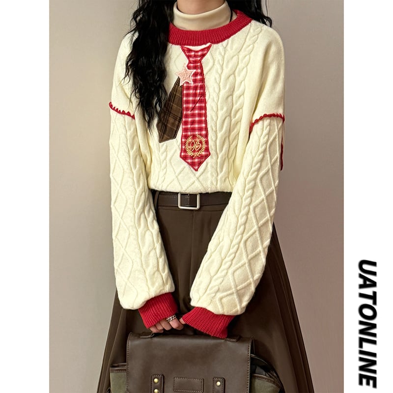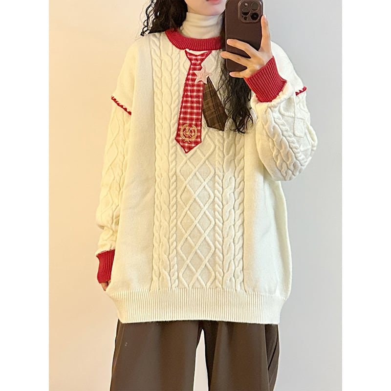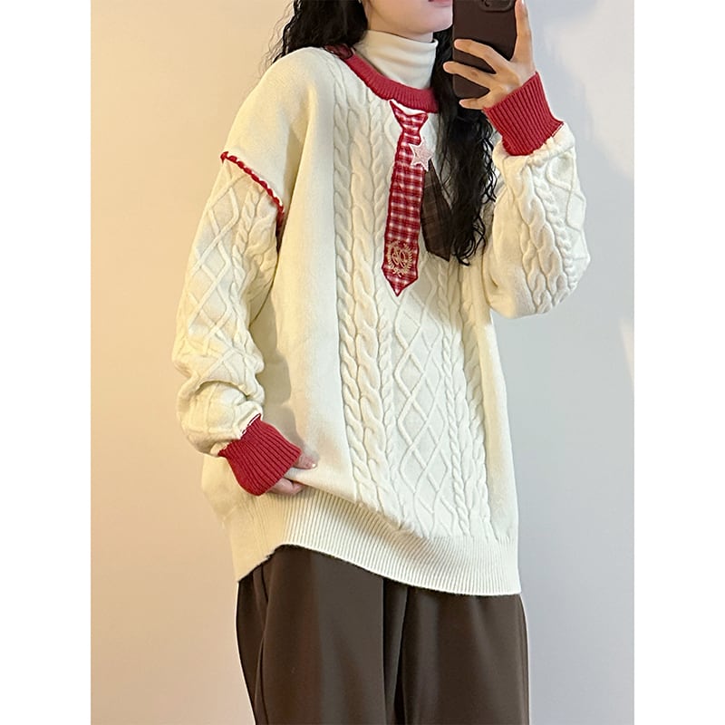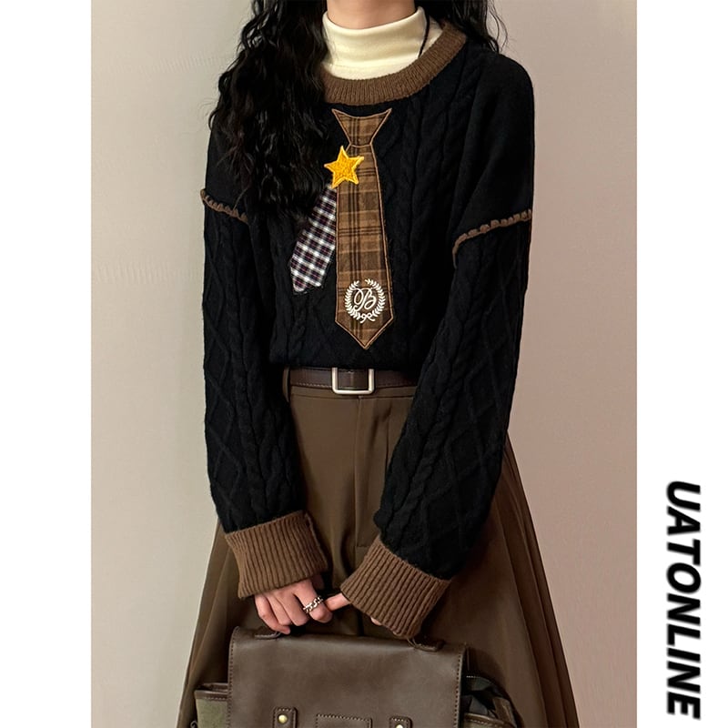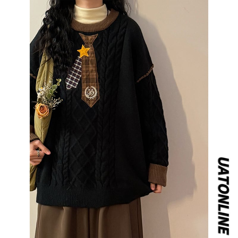 ♥ネクタイモチーフ配色セーター!【UATONLINEシリーズ】★セーター★ 2color ニットトップス レトロ