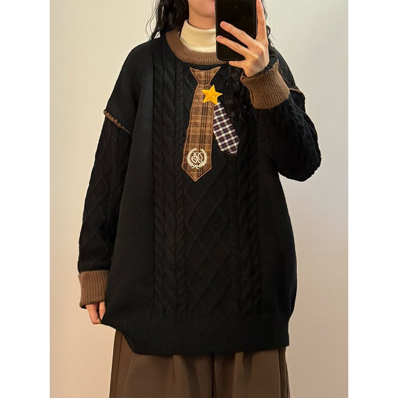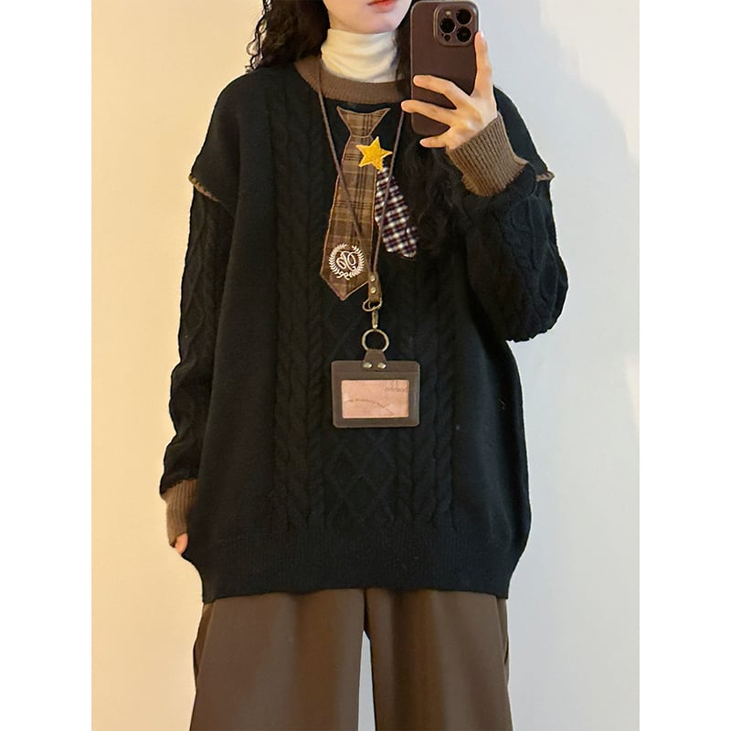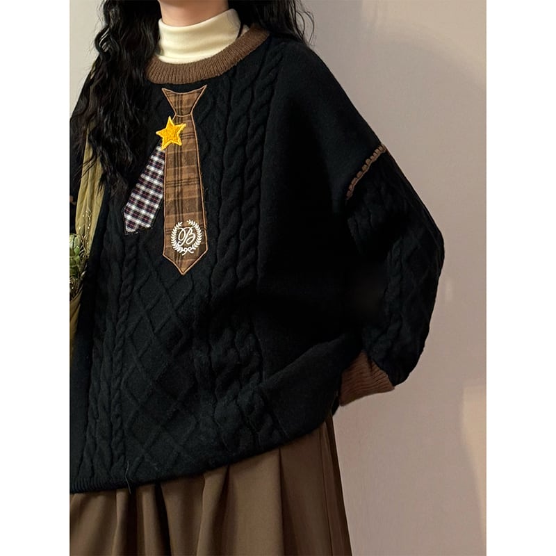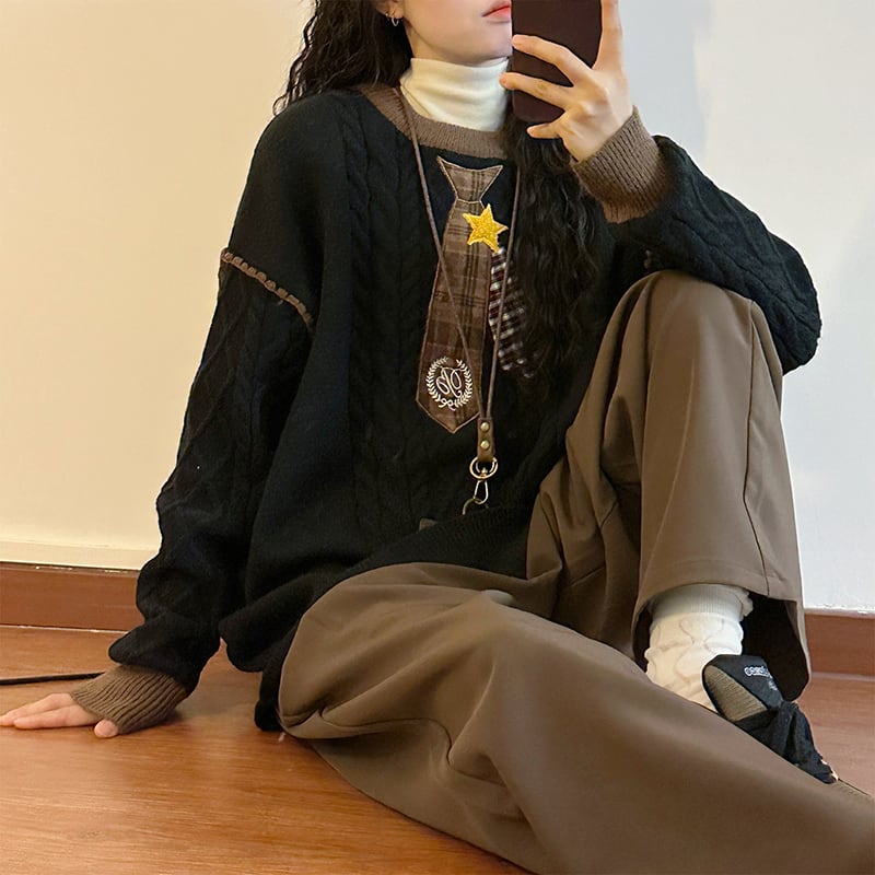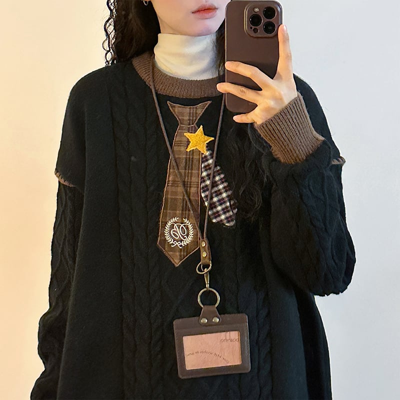 ♥ネクタイモチーフ配色セーター!【UATONLINEシリーズ】★セーター★ 2color ニットトップス レトロ
