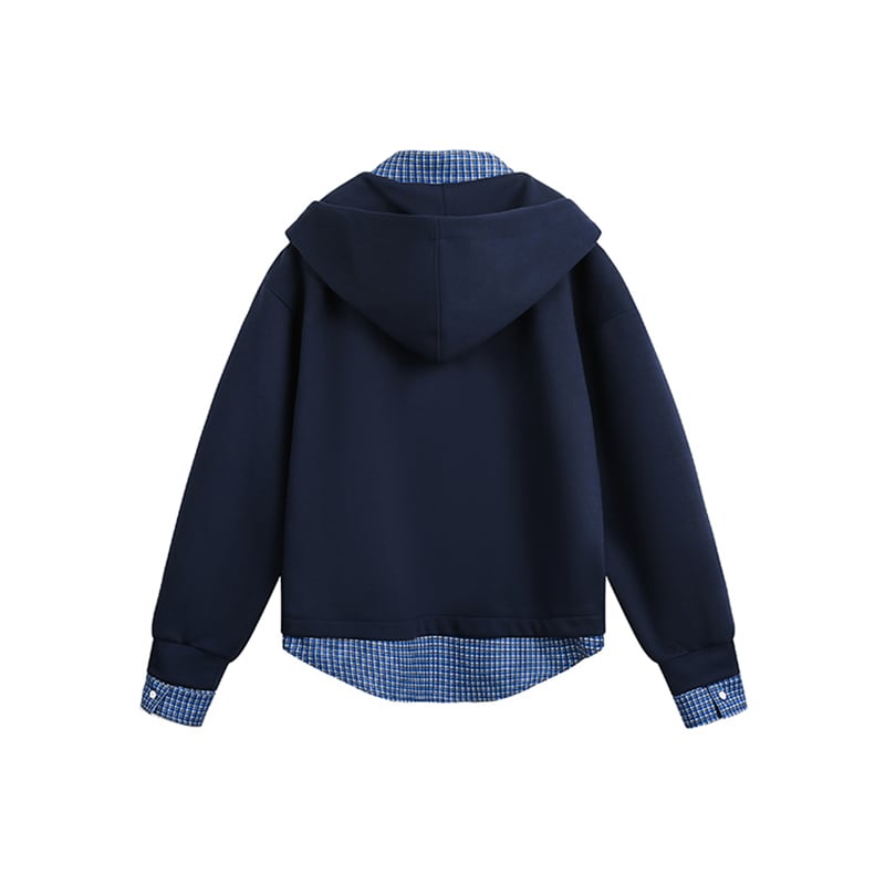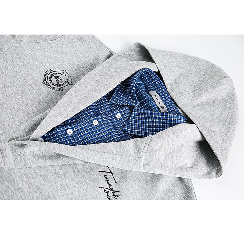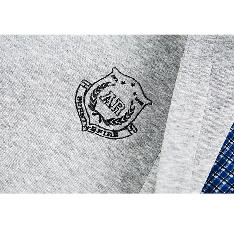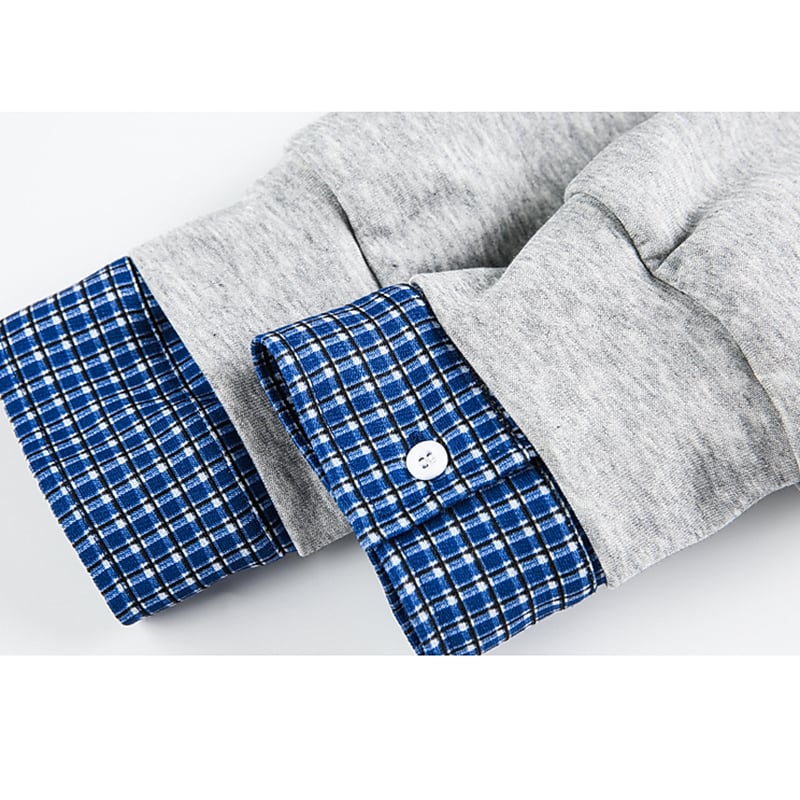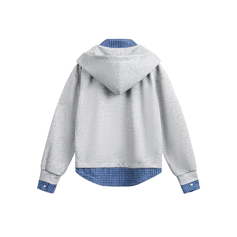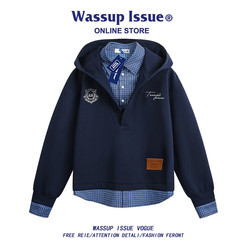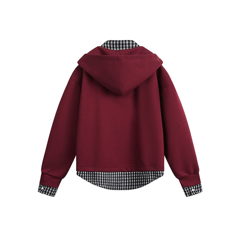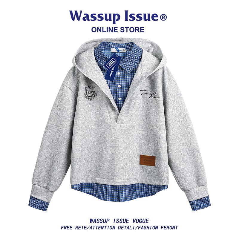 ♥重ね着チェック柄パーカー!【WSシリーズ】★パーカー★ ユニセックス 3color トップス 赤 青 灰 フェイクレイヤード
