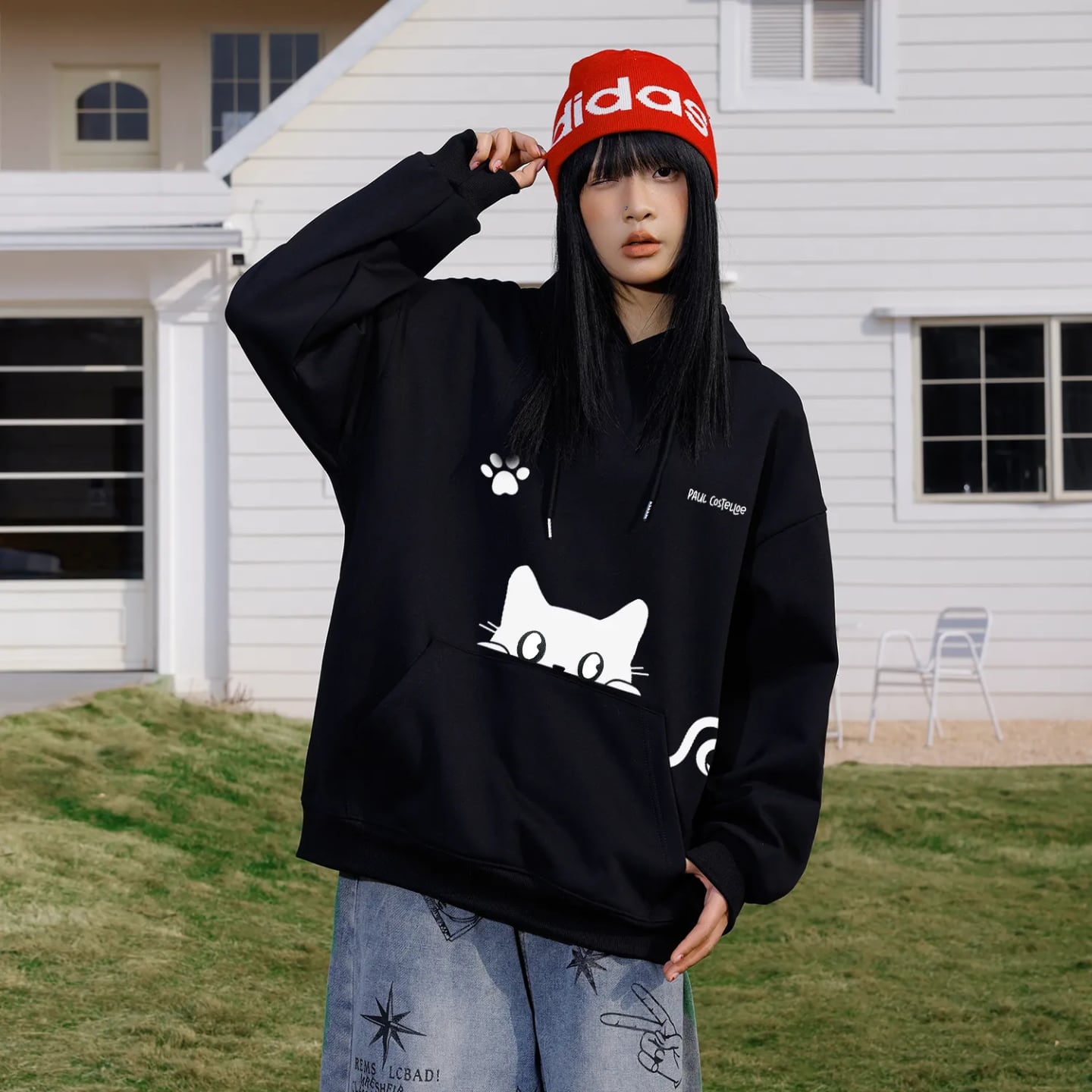 ♥猫柄4色パーカー!【ImcTLシリーズ】★パーカー★ ユニセックス 4color トップス 猫 猫柄 メンズ レディース