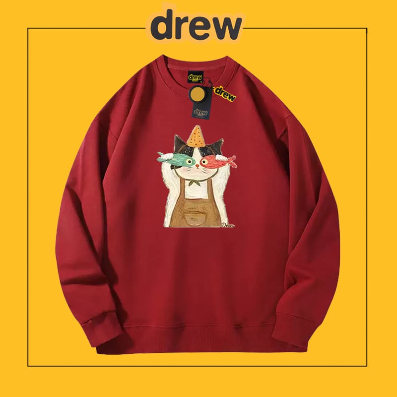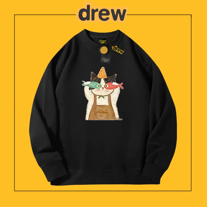 ♥6色選択可、彩り猫柄トップス!【Drewシリーズ】★トップス★ ユニセックス プリント 6color トップス カジュアル メンズ レディース