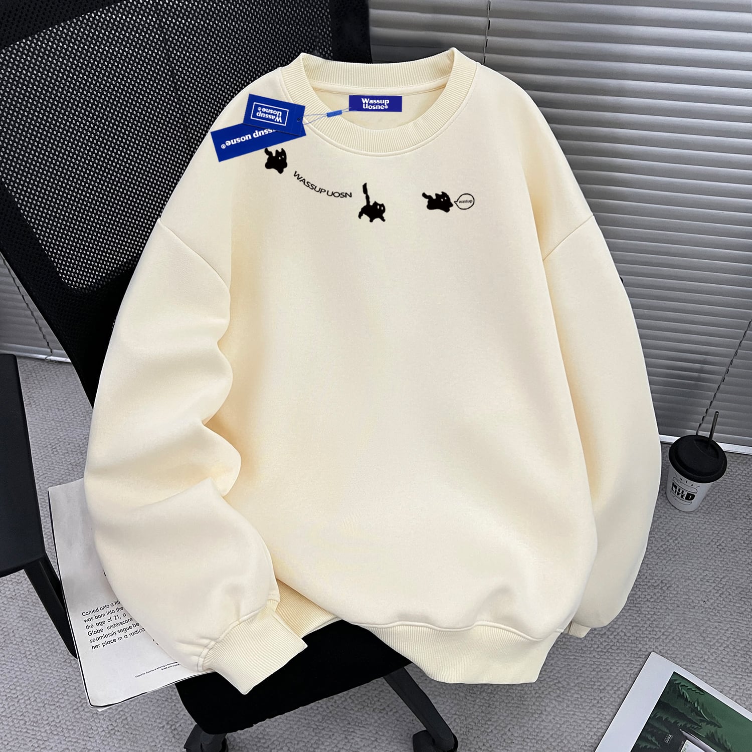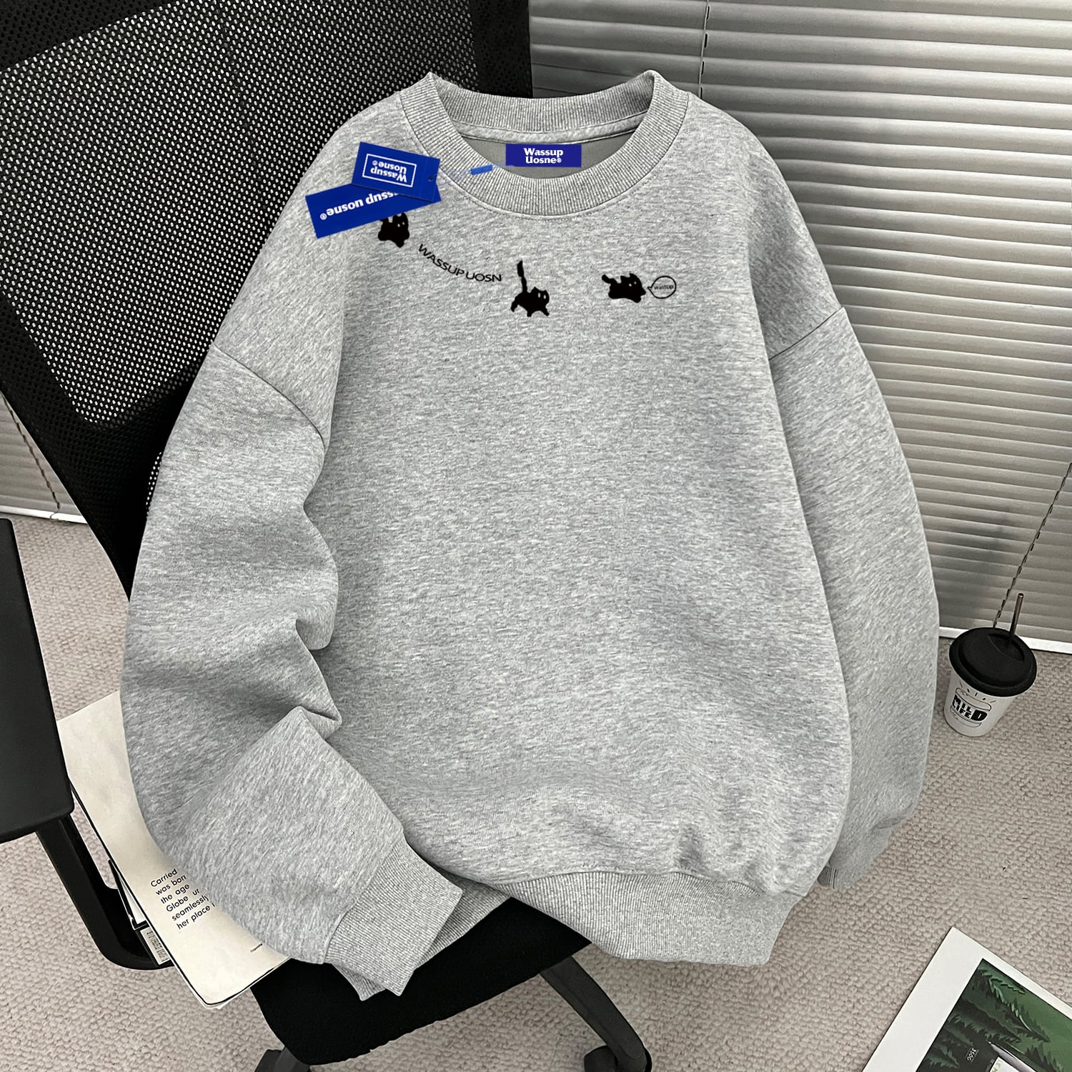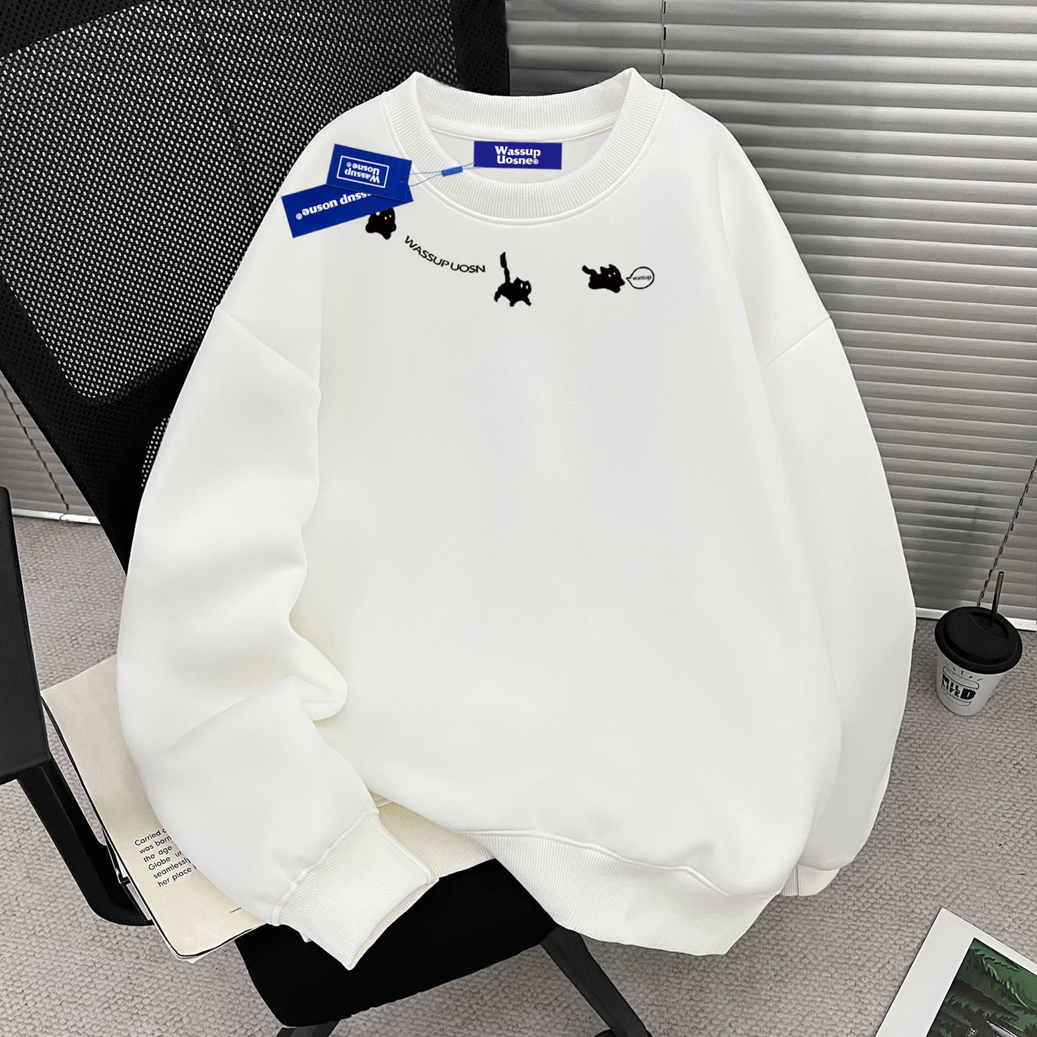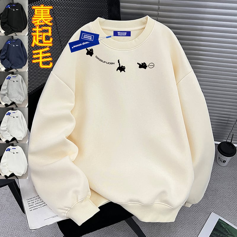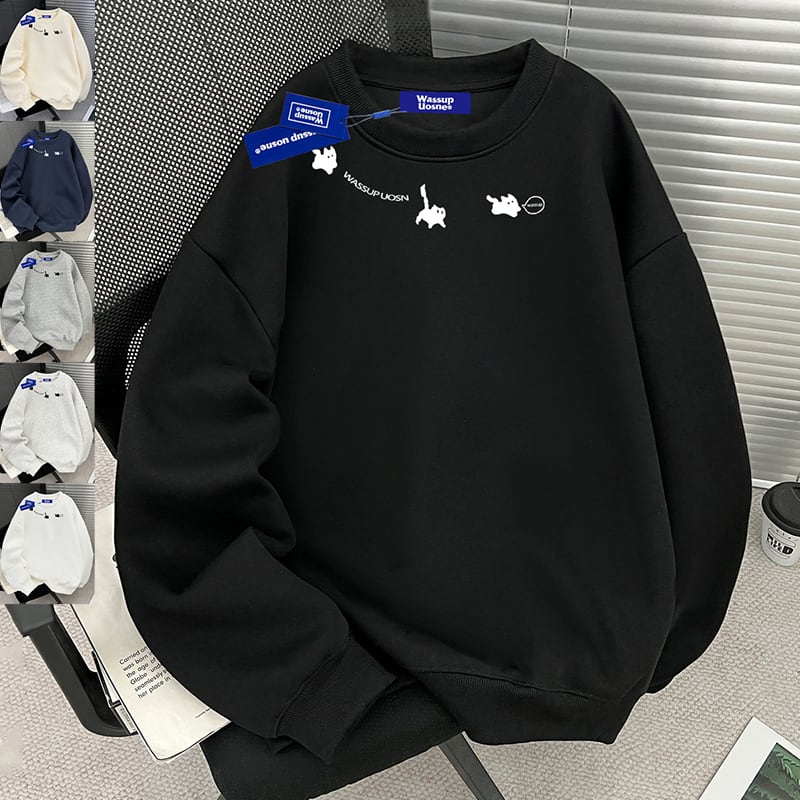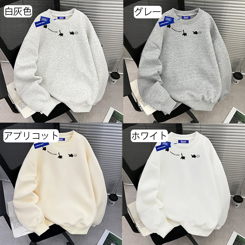 ♥猫、厚め、あったか!【WUシリーズ】★トップス★ 裏起毛 ユニセックス プリント 6color トップス カジュアル 猫 猫柄 配色