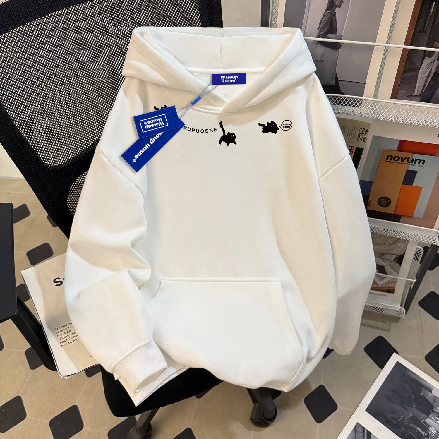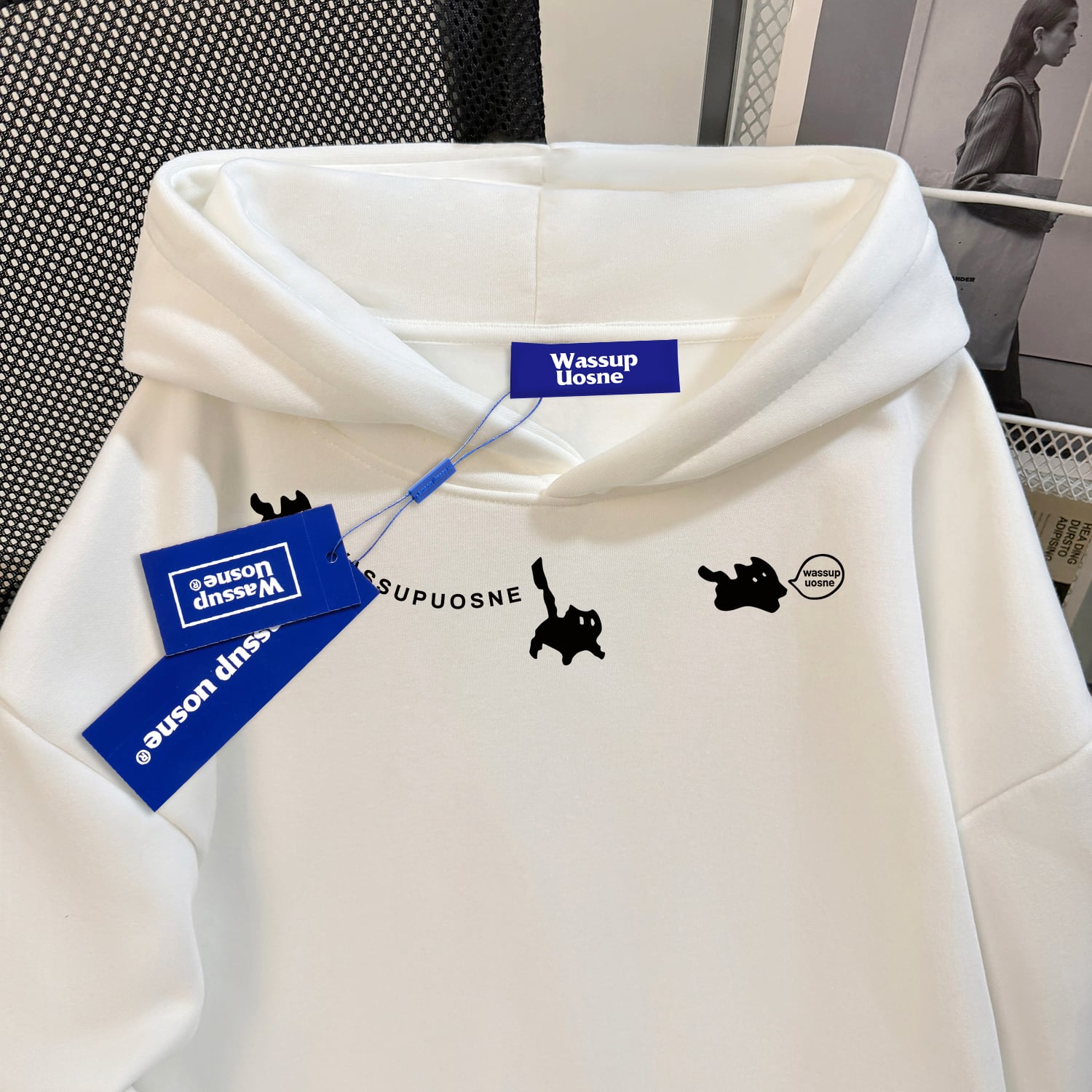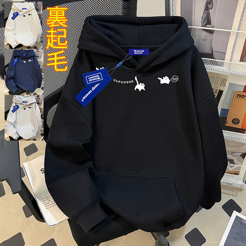 ♥暖かい猫柄パーカー!【WUシリーズ】★トップス★ 裏起毛 ユニセックス プリント 6color トップス カジュアル 猫 猫柄 配色
