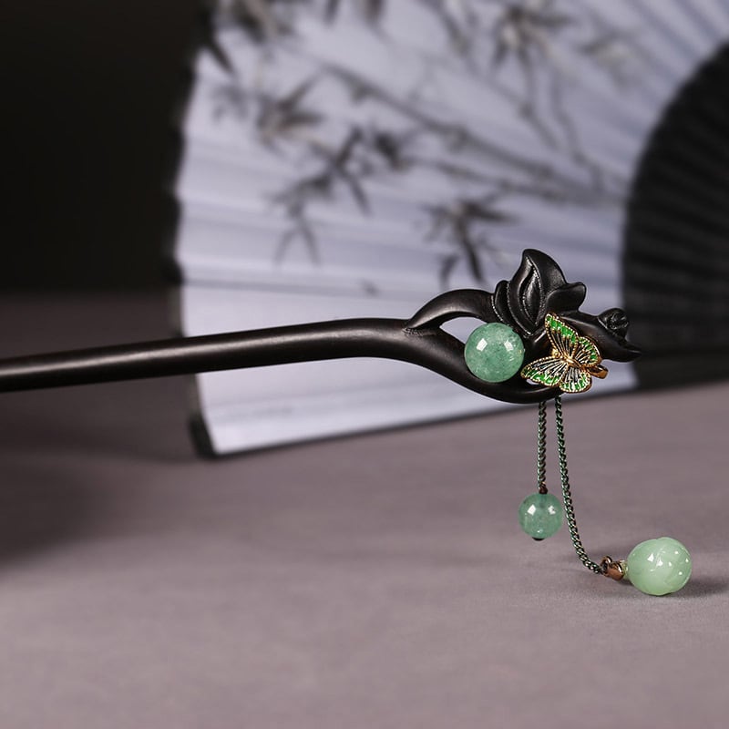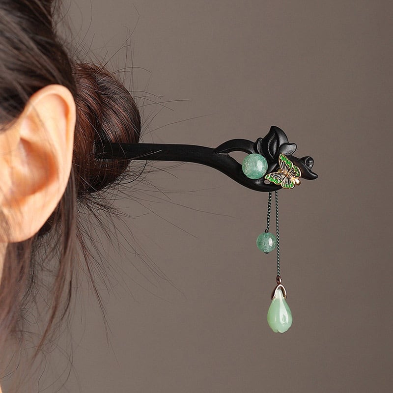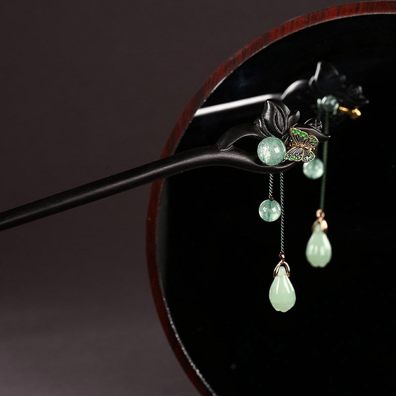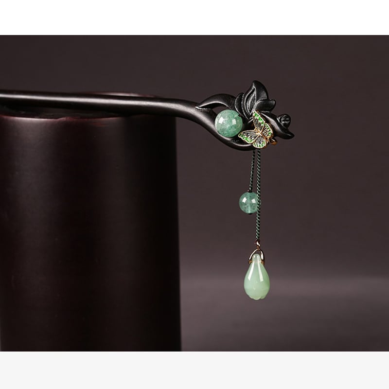 ♥歩くたびに、優雅な音色!【樓蘭客棧シリーズ】★チャイナ風髪飾り★ 簪 1個 レディース アクセサリー フリンジ グリーン 緑