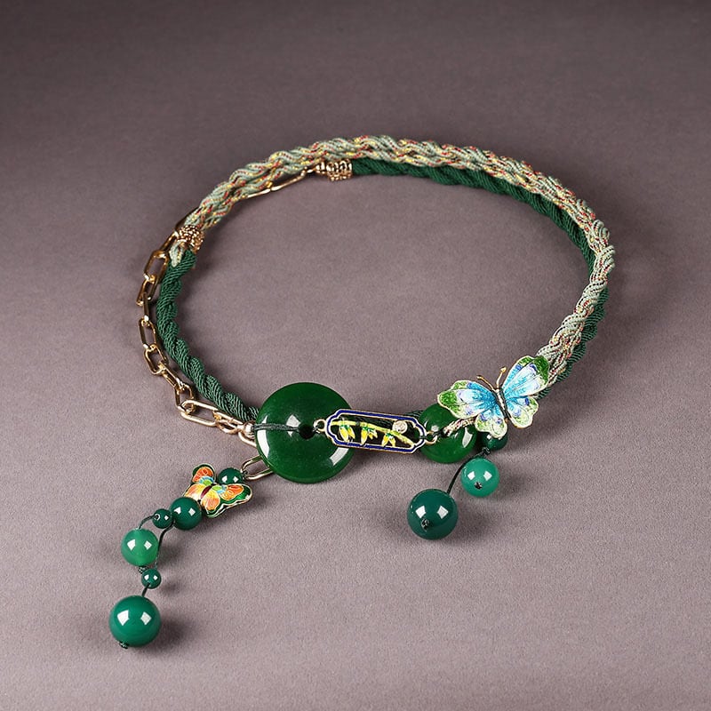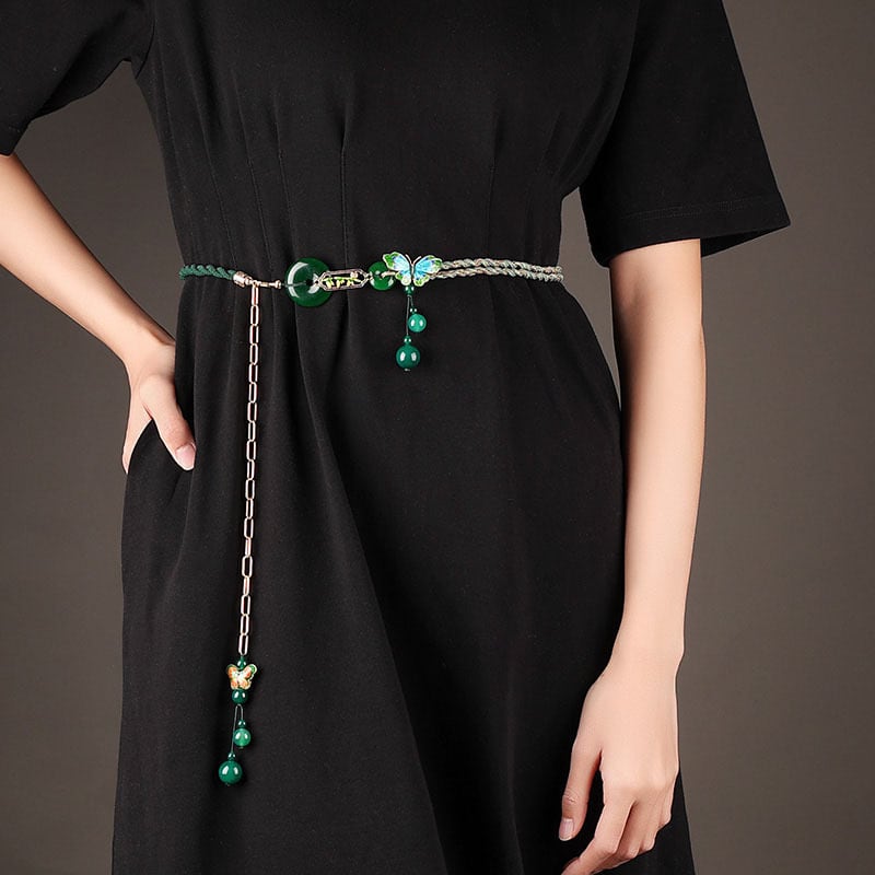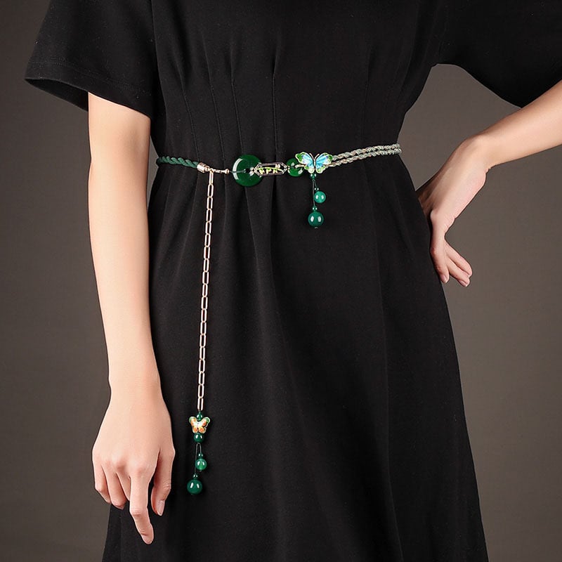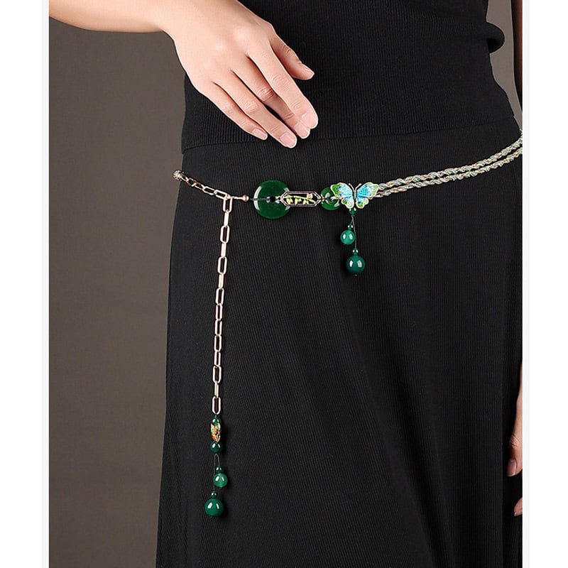 ♥緑のしずく、腰を飾る!【樓蘭客棧シリーズ】★チャイナ風ベルト★ レディース アクセサリー オリジナル 蝶々 フリンジ