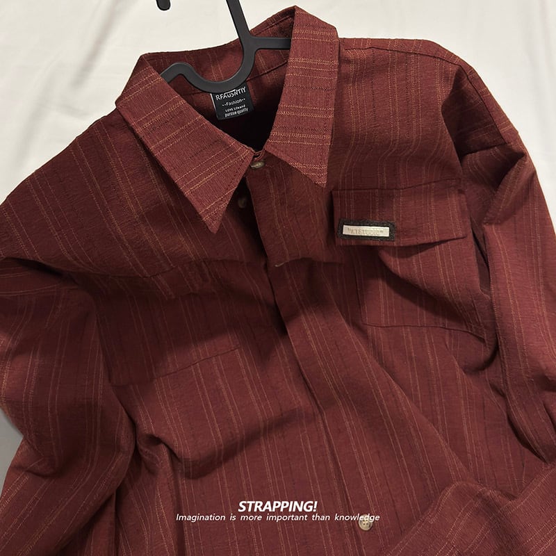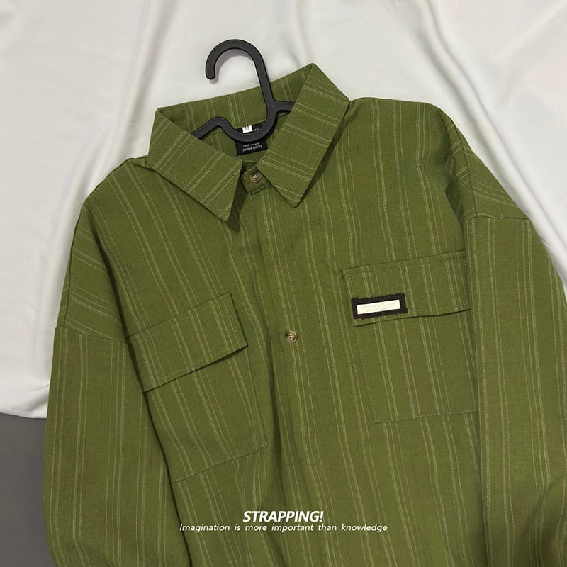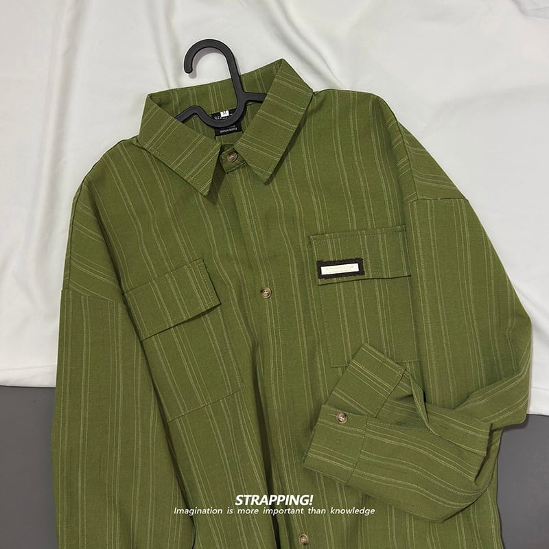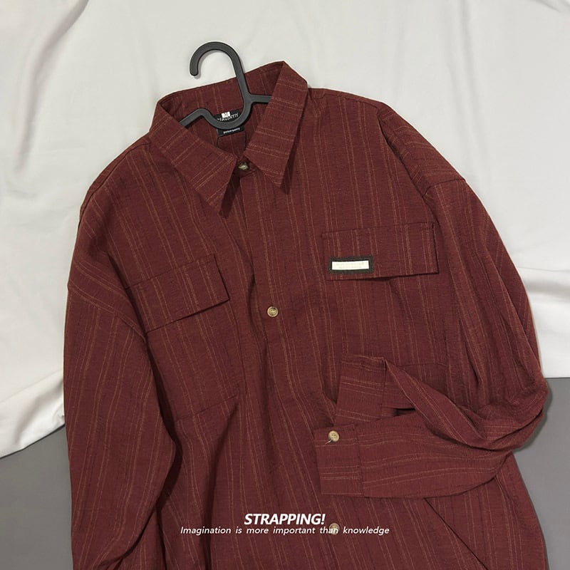 ♥縦縞のシャツ、レトロと日常の間で!【STRAPPINGシリーズ】★シャツ★ ユニセックス 2color トップス 長袖シャツ 縦縞 縞模様