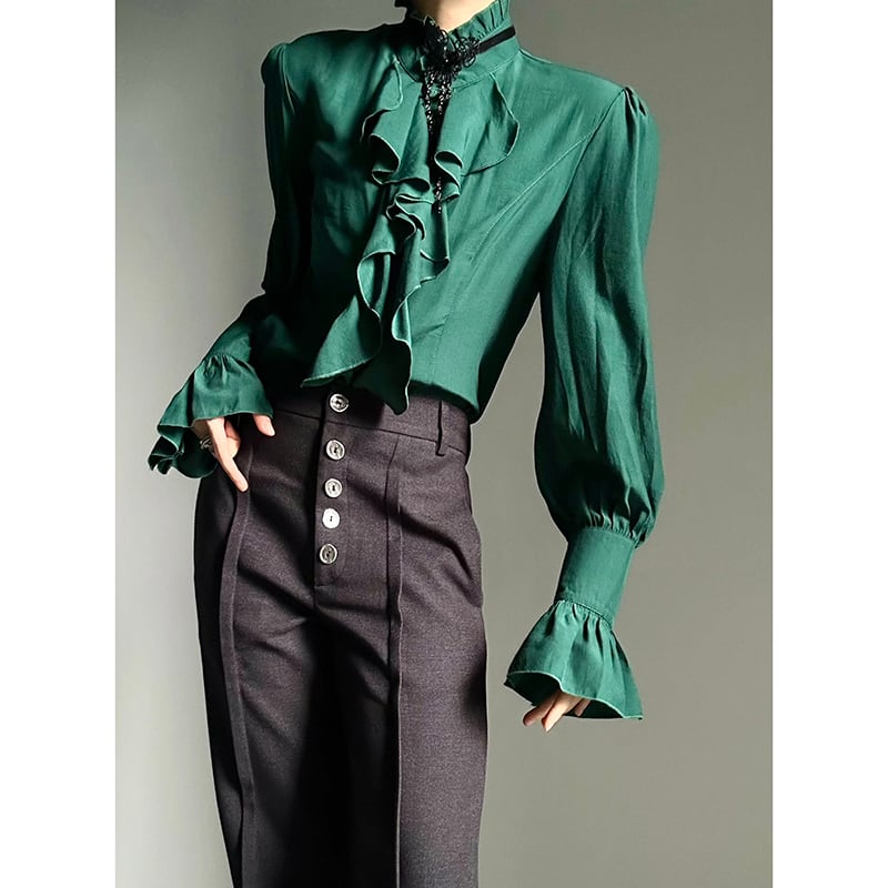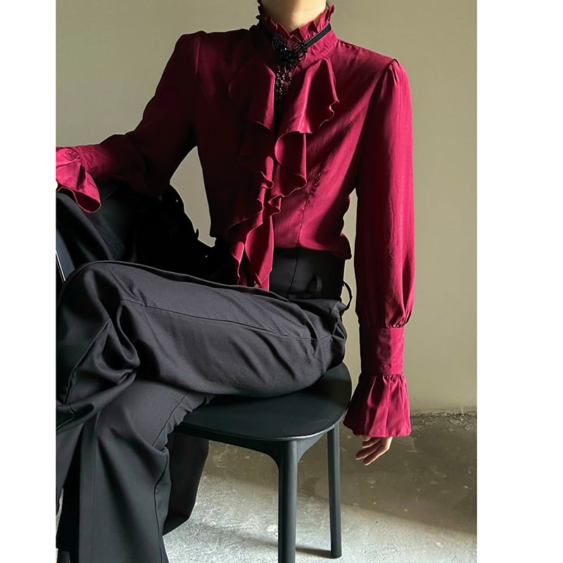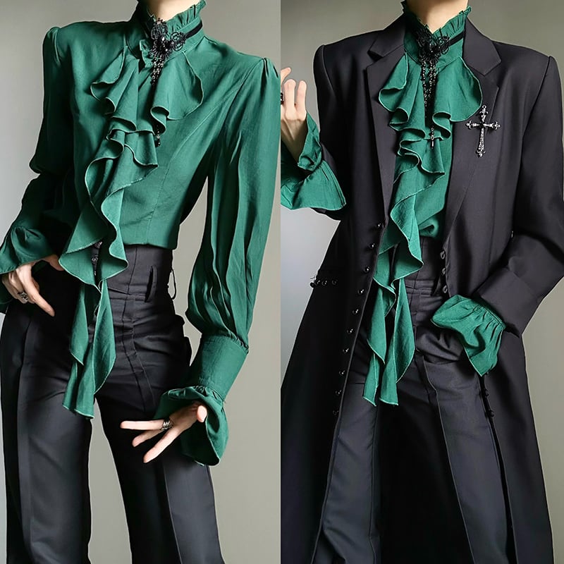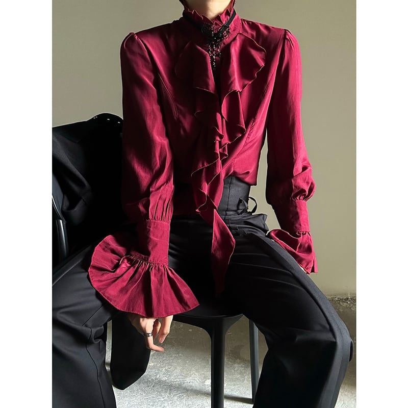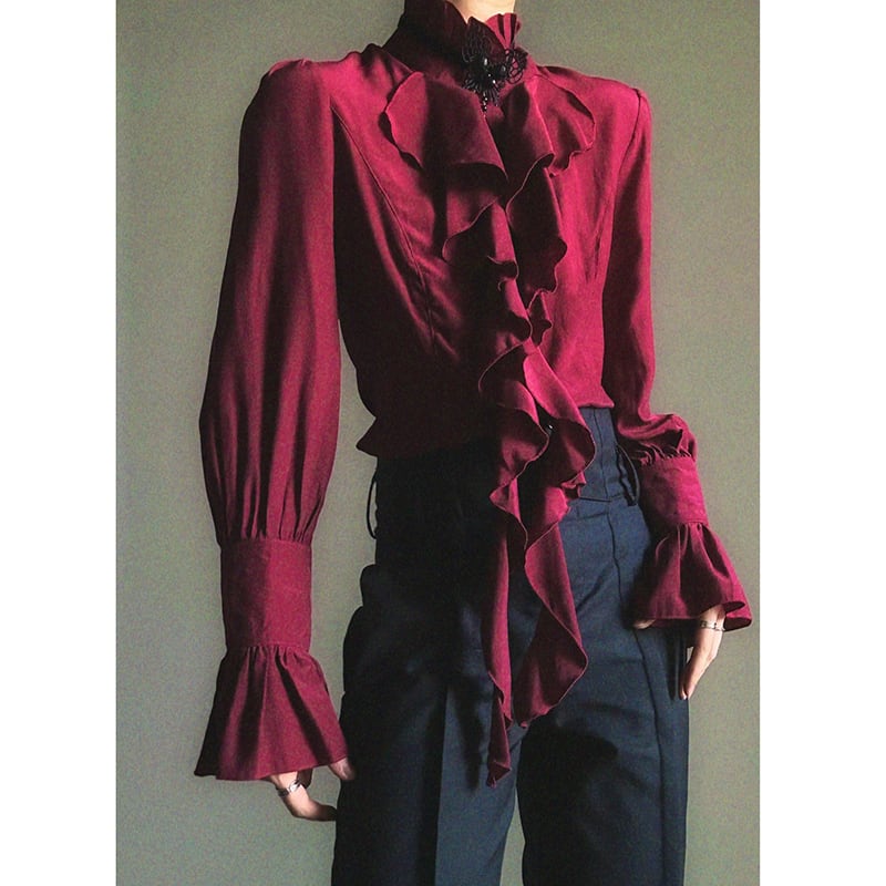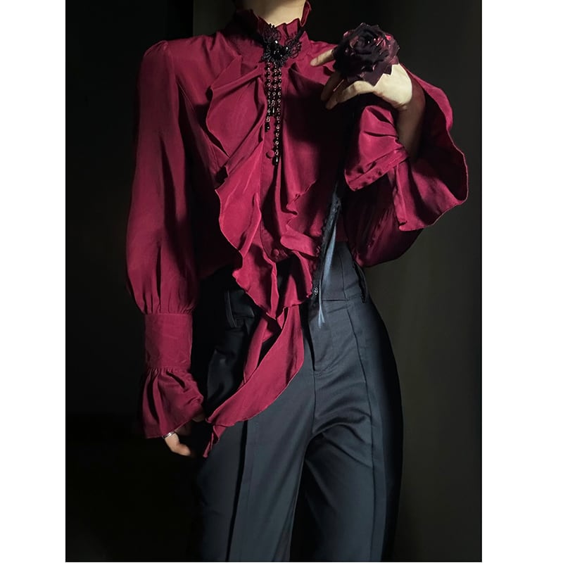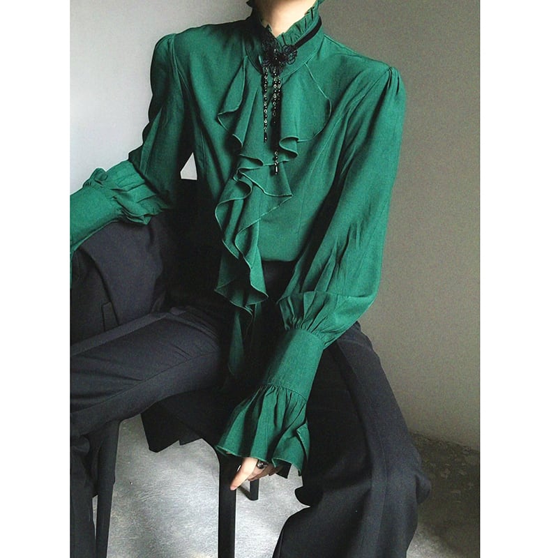 ♥古典とフリルの共演!【ASAEシリーズ】★シャツ★ ユニセックス 2color 長袖シャツ トップス ランタンスリーブ