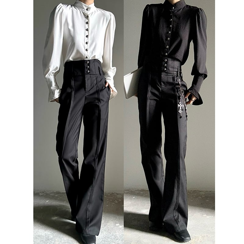 ♥ストレートからワイドへ、美脚の軌跡!【ASAEシリーズ】★ズボン★ ボトムス かっこいい 合わせやすい 着痩せ 高見せ ブラック 黒い