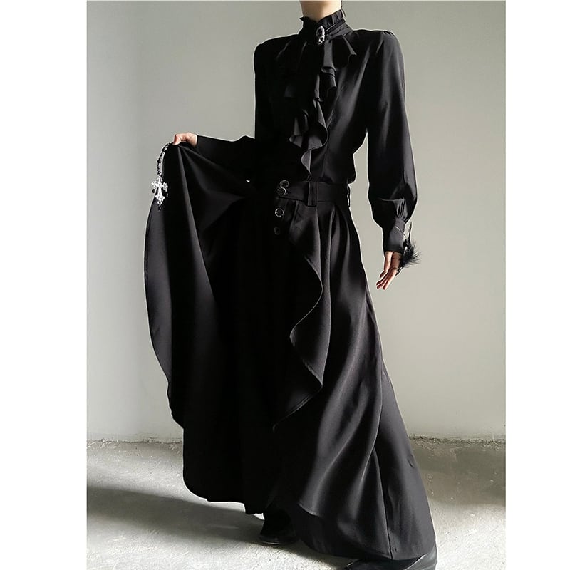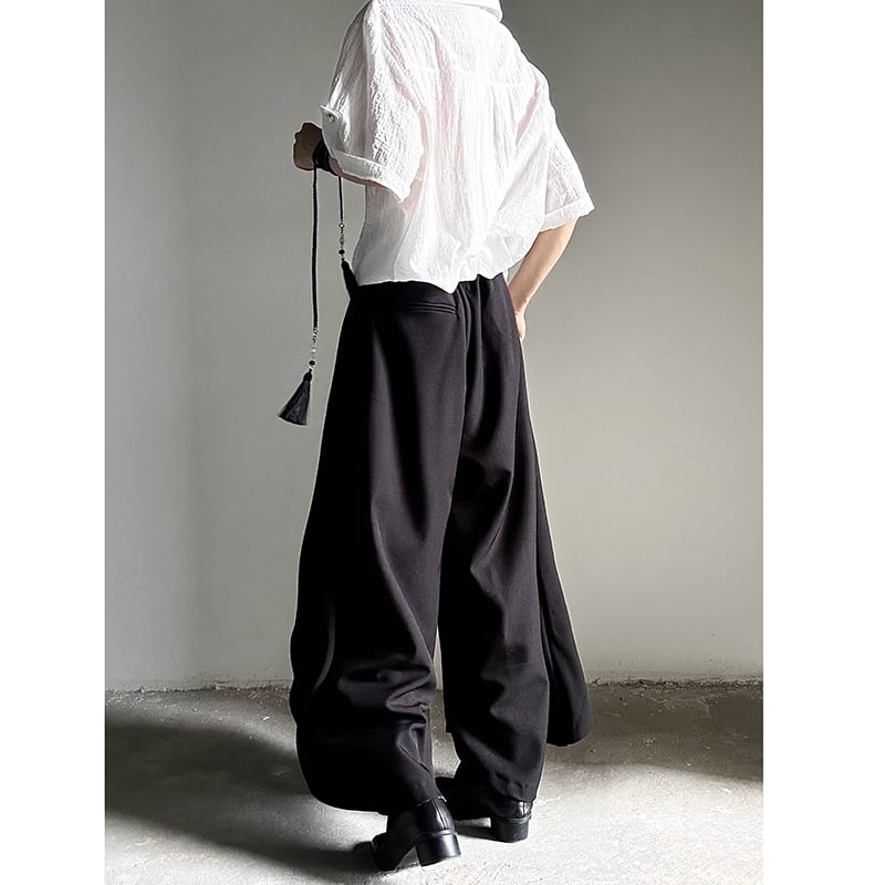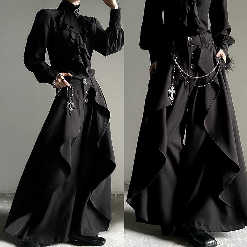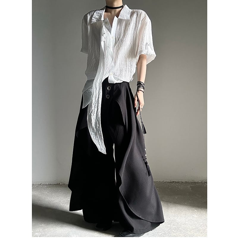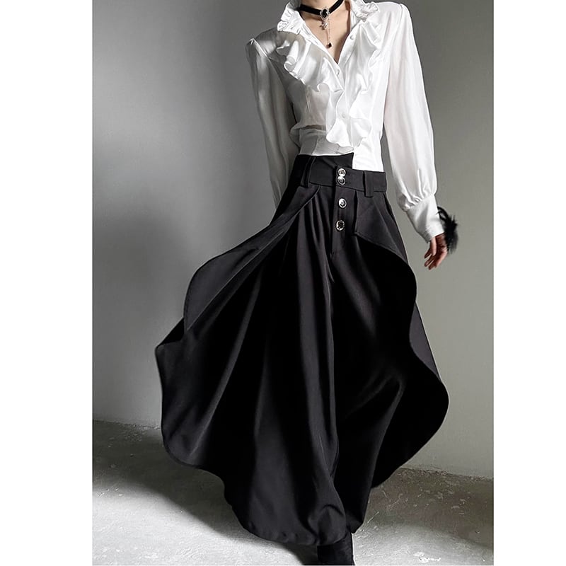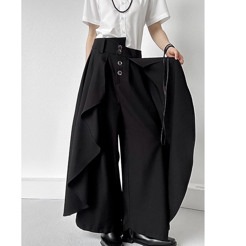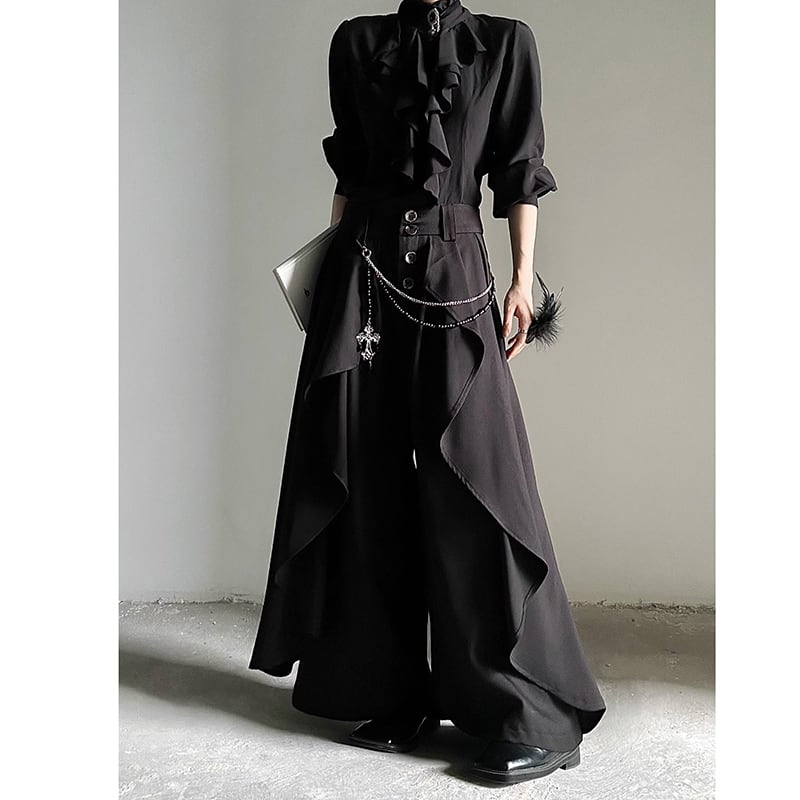 ♥非対称に、闇が揺れる!【ASAEシリーズ】★チャイナ風ズボン★ ボトムス ガウチョパンツ 合わせやすい ブラック 黒い