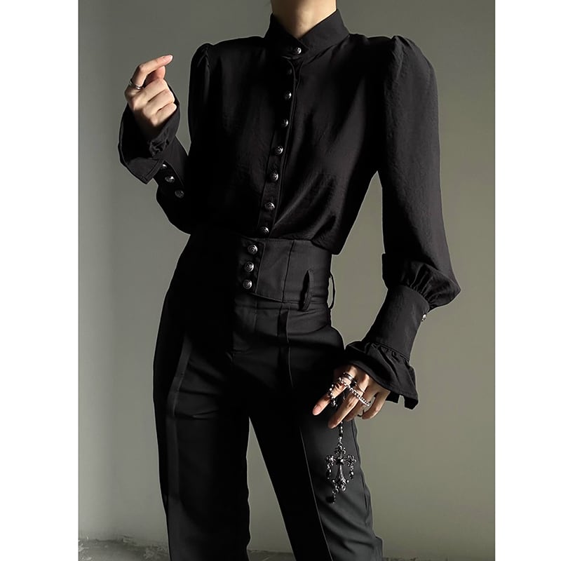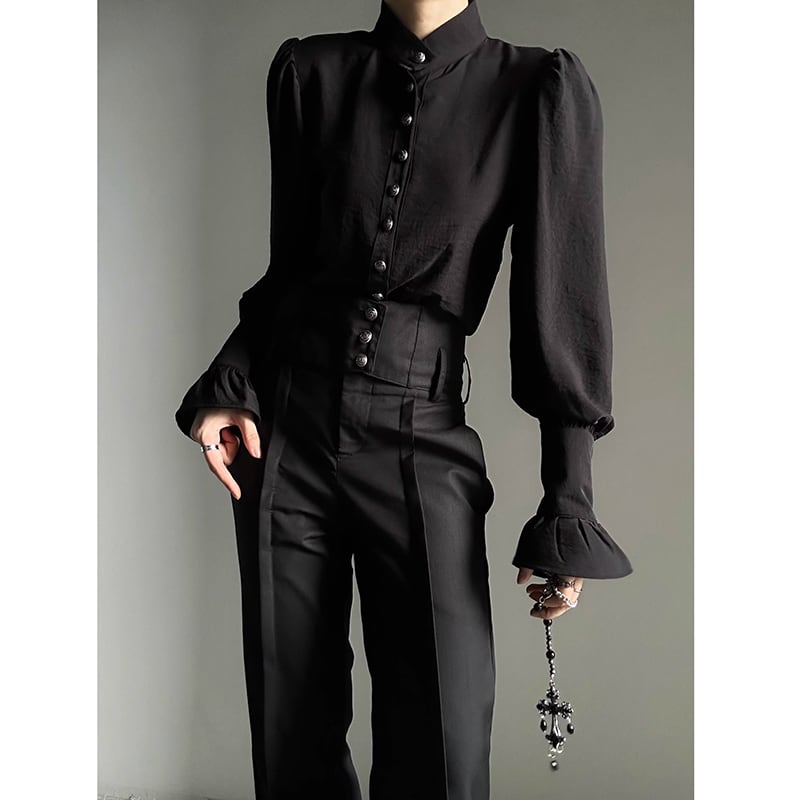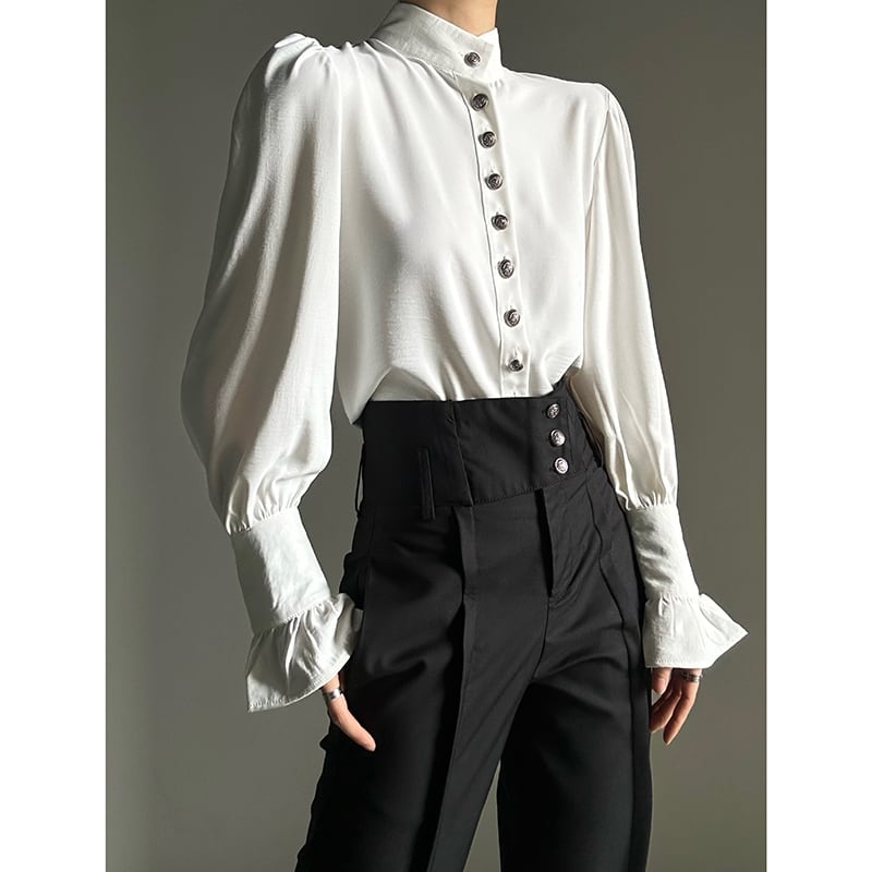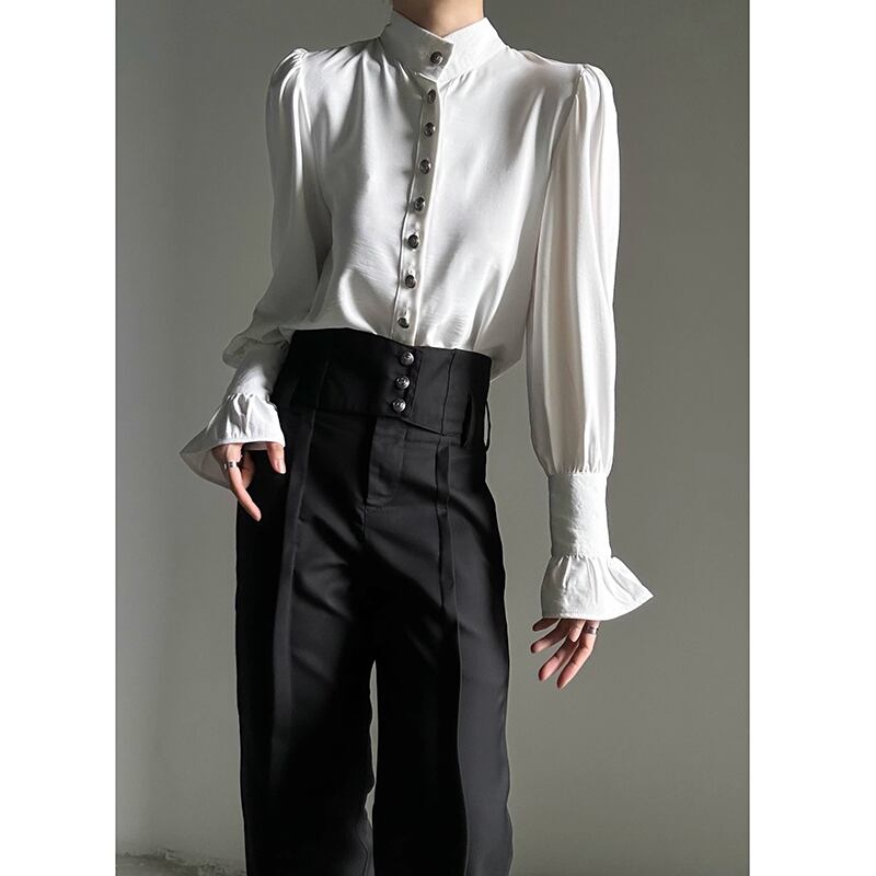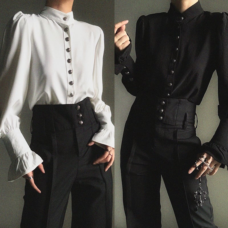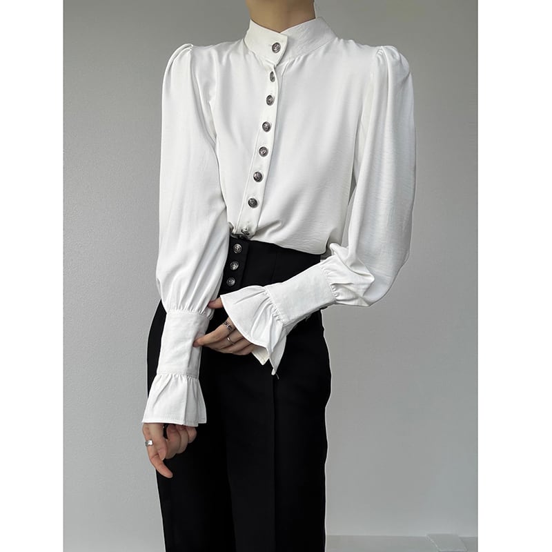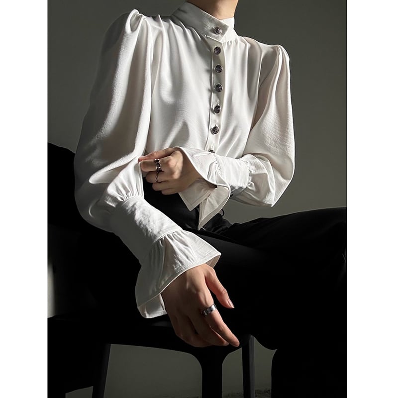 ♥宮廷風スタンドカラーシャツ!【ASAEシリーズ】★シャツ★ ユニセックス 2color 長袖シャツ トップス スタンドネック