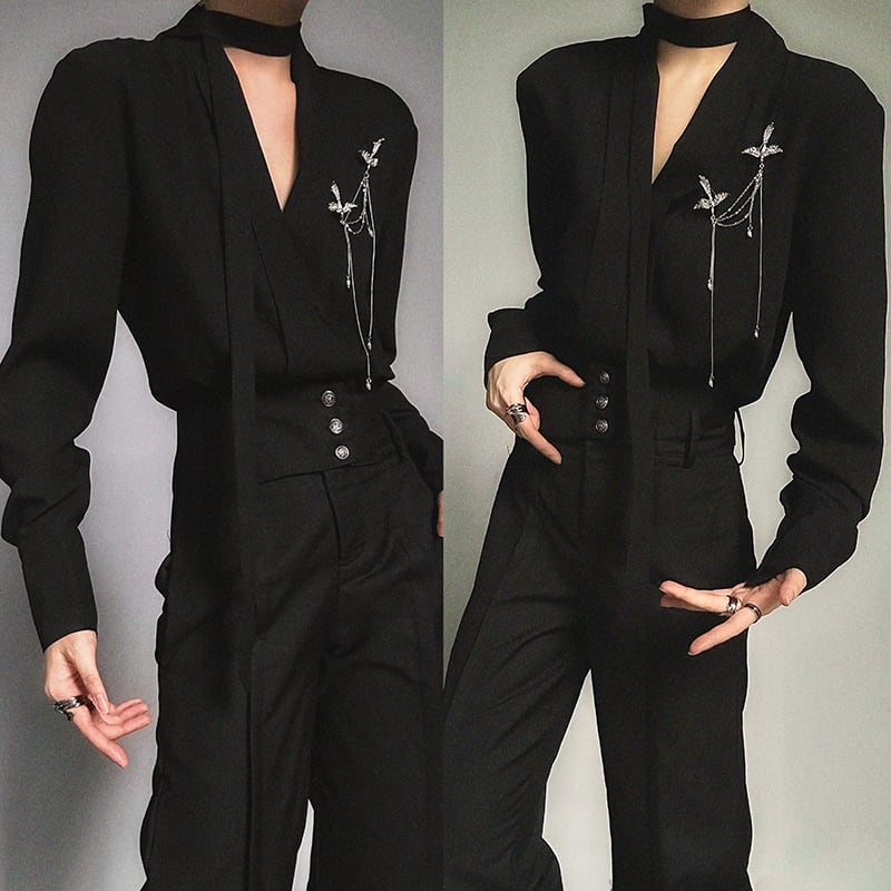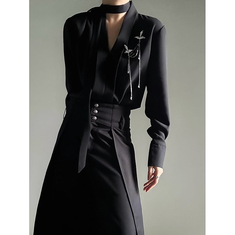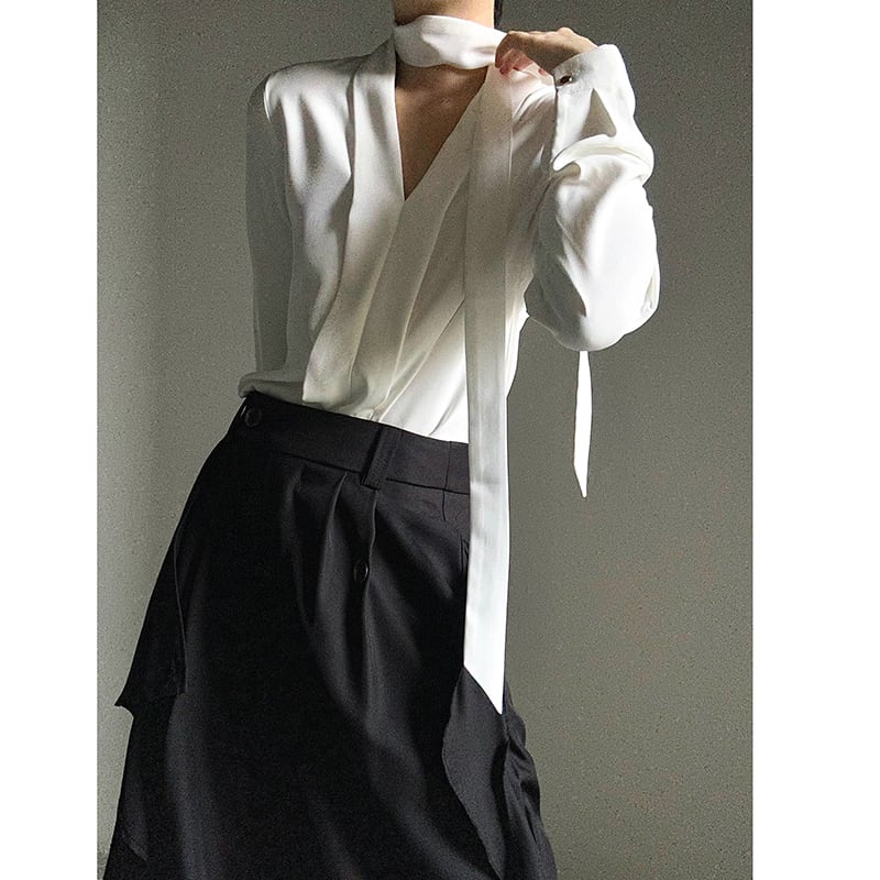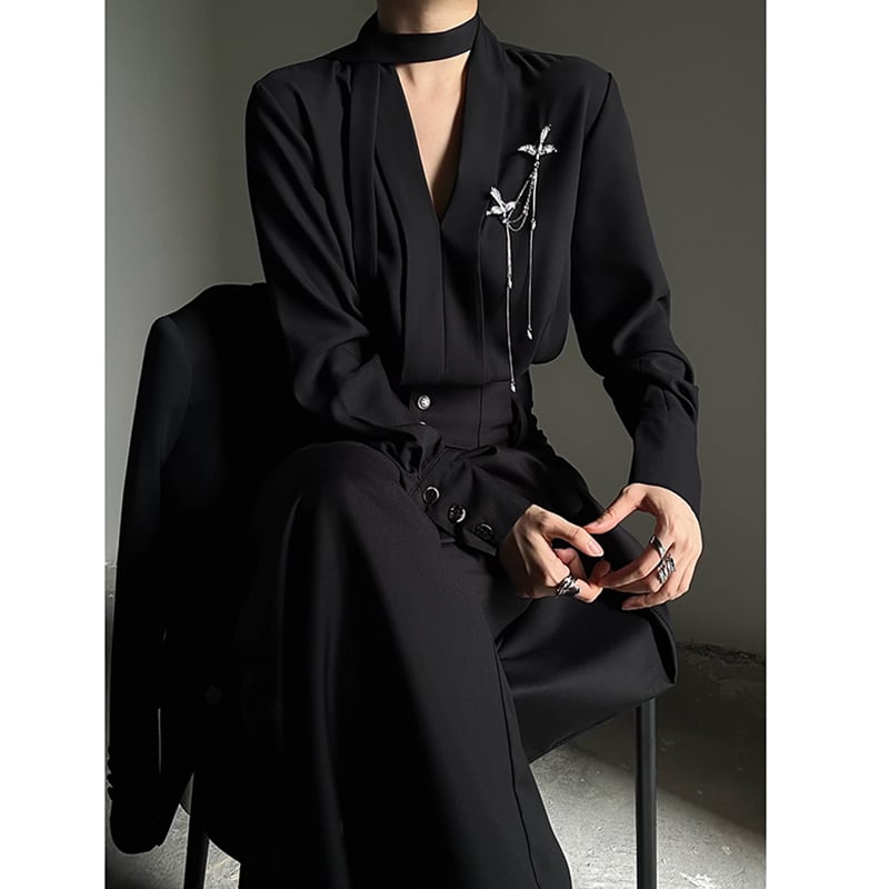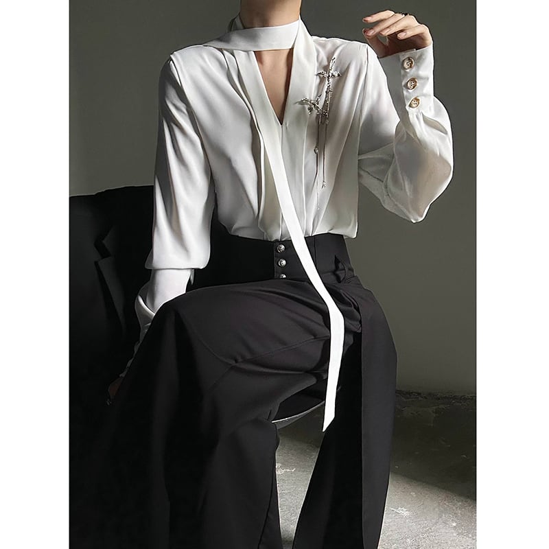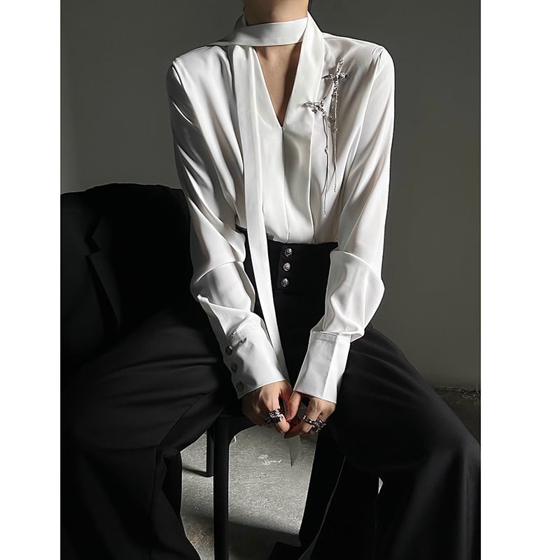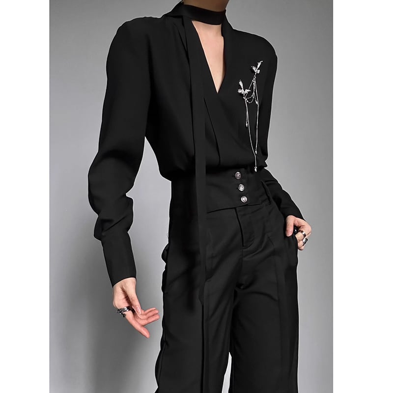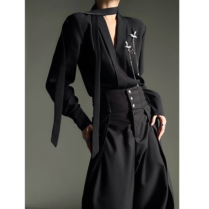 ♥先着20名様にブローチ贈呈!【ASAEシリーズ】★チャイナ風★ ユニセックス 2color 長袖シャツ シャツ Vネック 黒 白