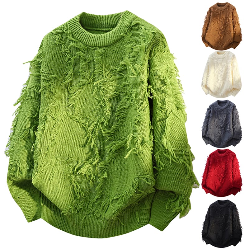 ☼6色選択可、おしゃれなフリンジニット!【WSシリーズ】★セーター★ ユニセックス 6color ニットトップス 大きいサイズ