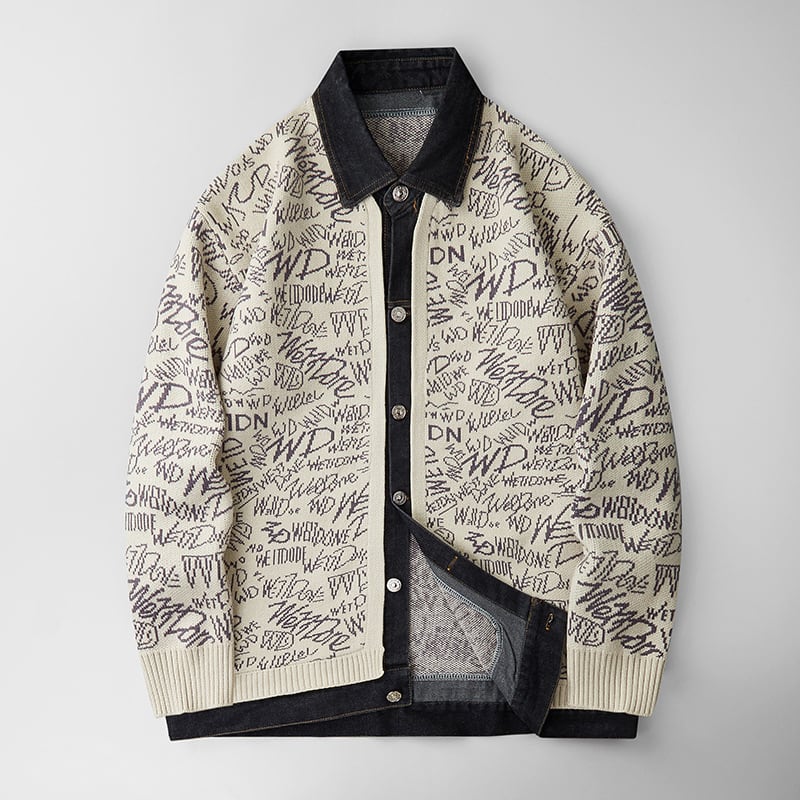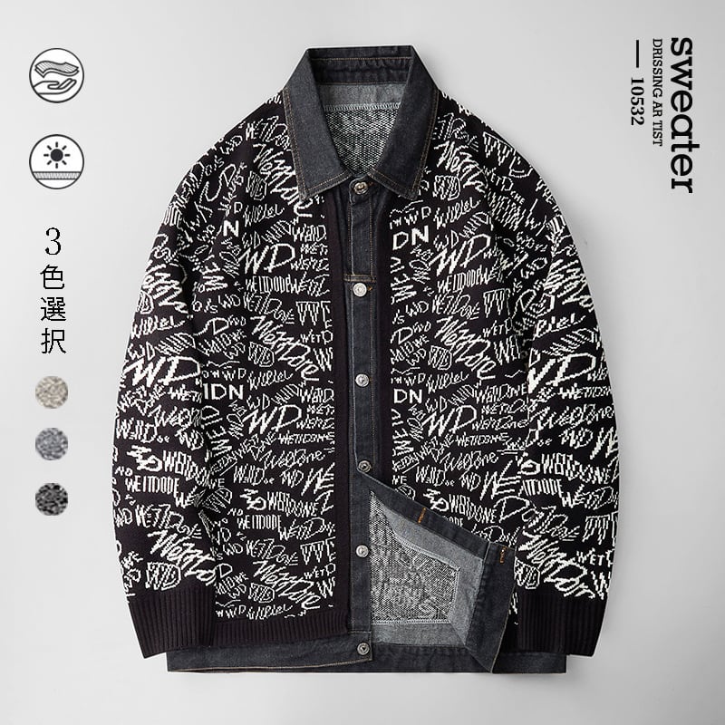 ☼フェイクレイヤードニット!【WSシリーズ】★セーター★ ユニセックス 3color カーディガン ニットトップス 大きいサイズ アルファベット