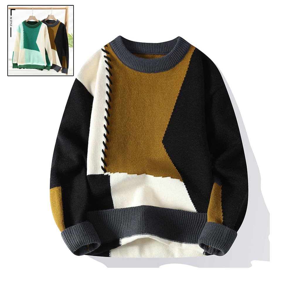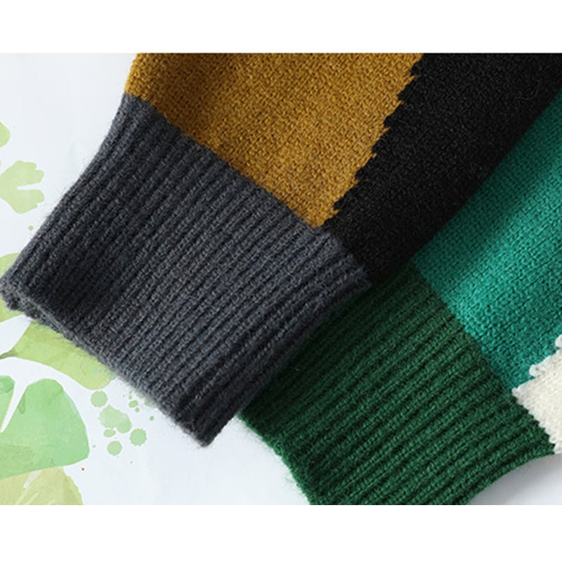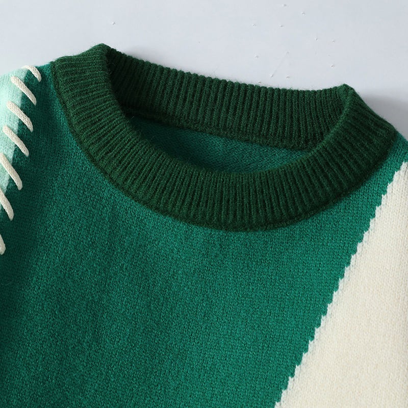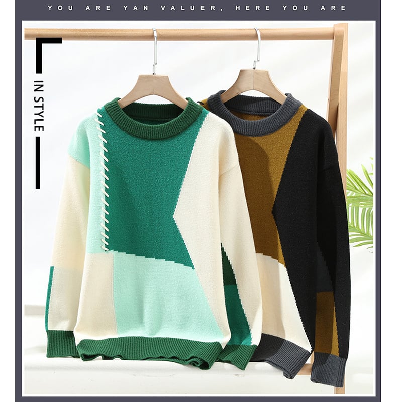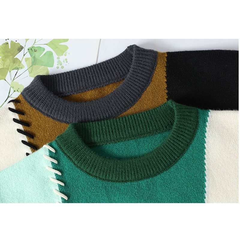 ☼カラーブロックで差がつく、レトロニット!【WSシリーズ】★セーター★ ユニセックス 2color ニットトップス 配色