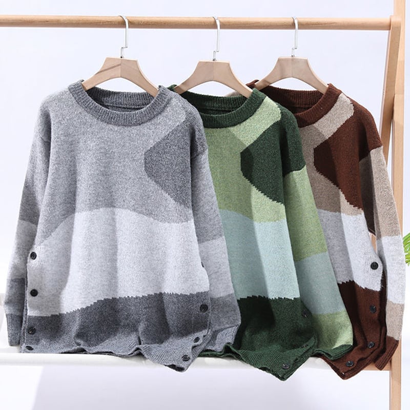☼3色選択可、配色ニット!【WSシリーズ】★セーター★ ユニセックス 3color ニットトップス 大きいサイズ