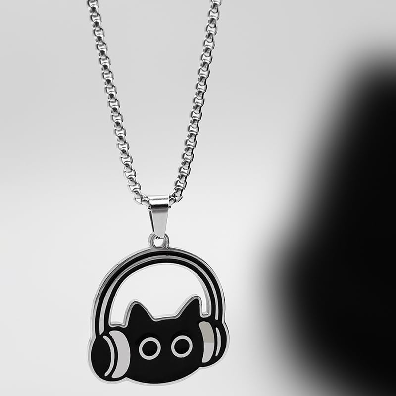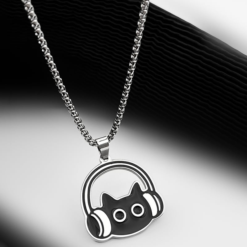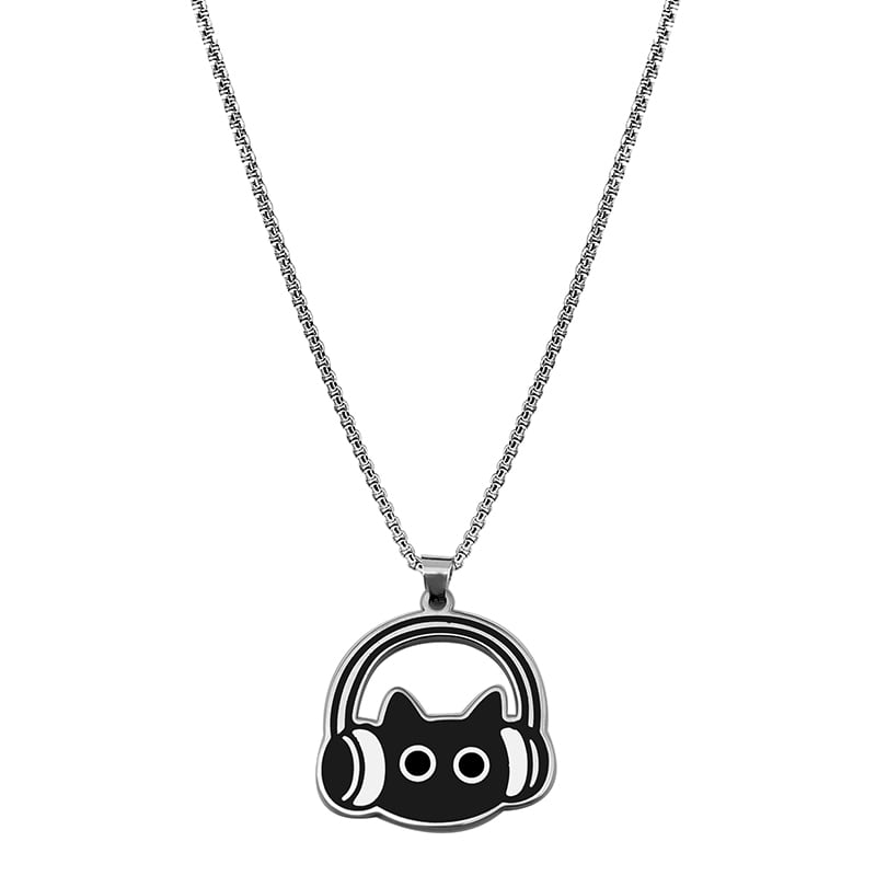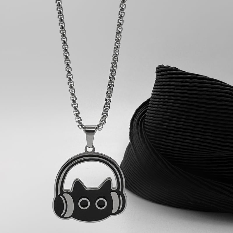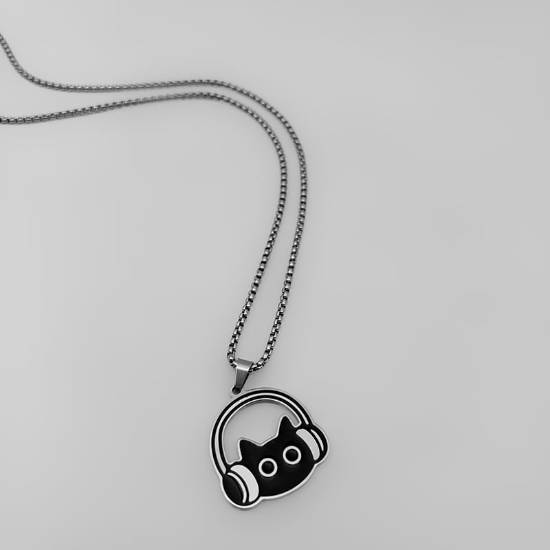 ♥イヤホンをつけた黒猫ネックレス!【WHYBLUEシリーズ】★ネックレス★ 首輪 アクセサリー 小物 デザイン性有り 猫 猫柄 ネコ ねこ 男女兼用 メンズ レディース
