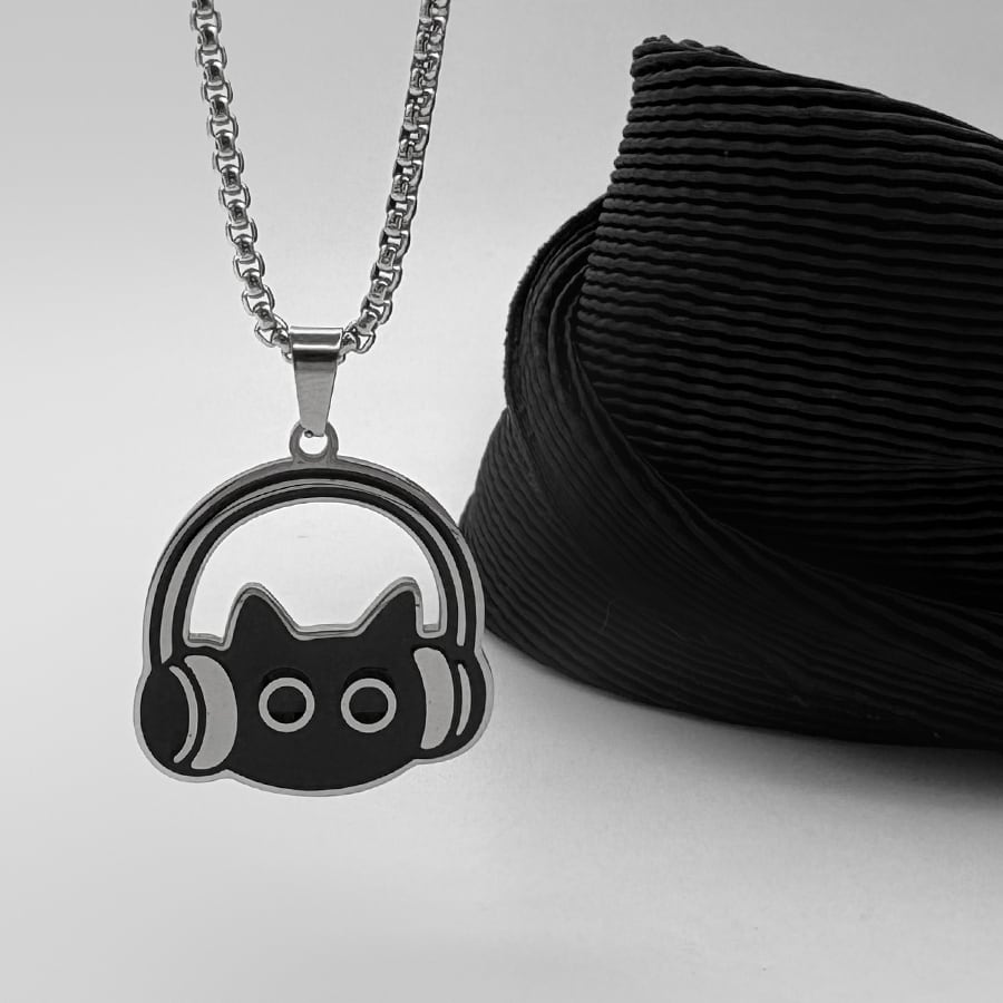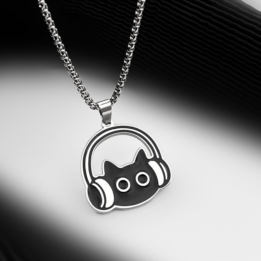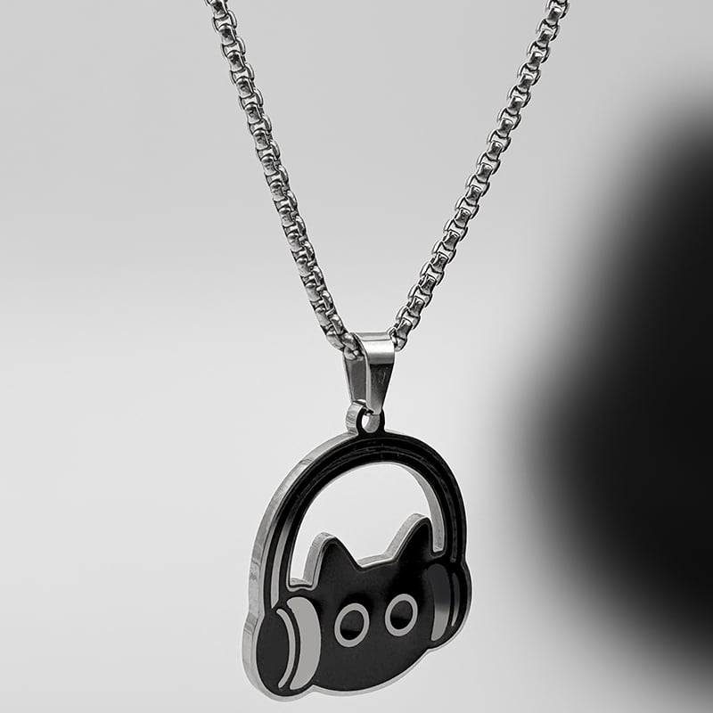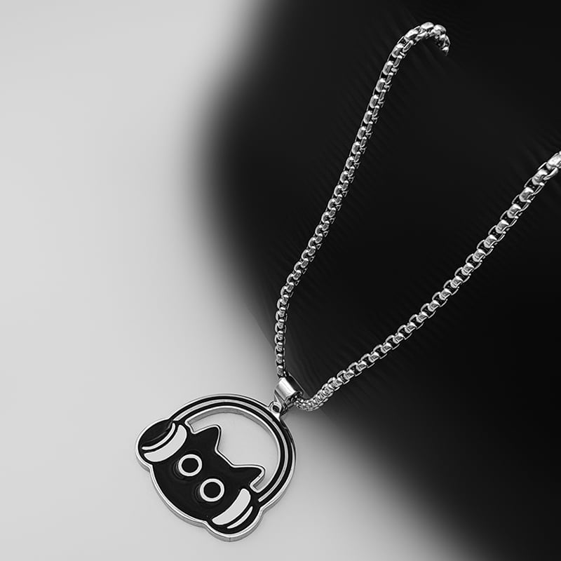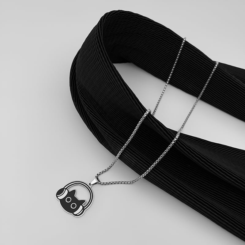 ♥イヤホンをつけた黒猫ネックレス!【WHYBLUEシリーズ】★ネックレス★ 首輪 アクセサリー 小物 デザイン性有り 猫 猫柄 ネコ ねこ 男女兼用 メンズ レディース