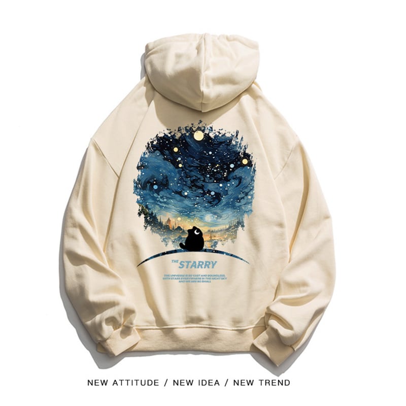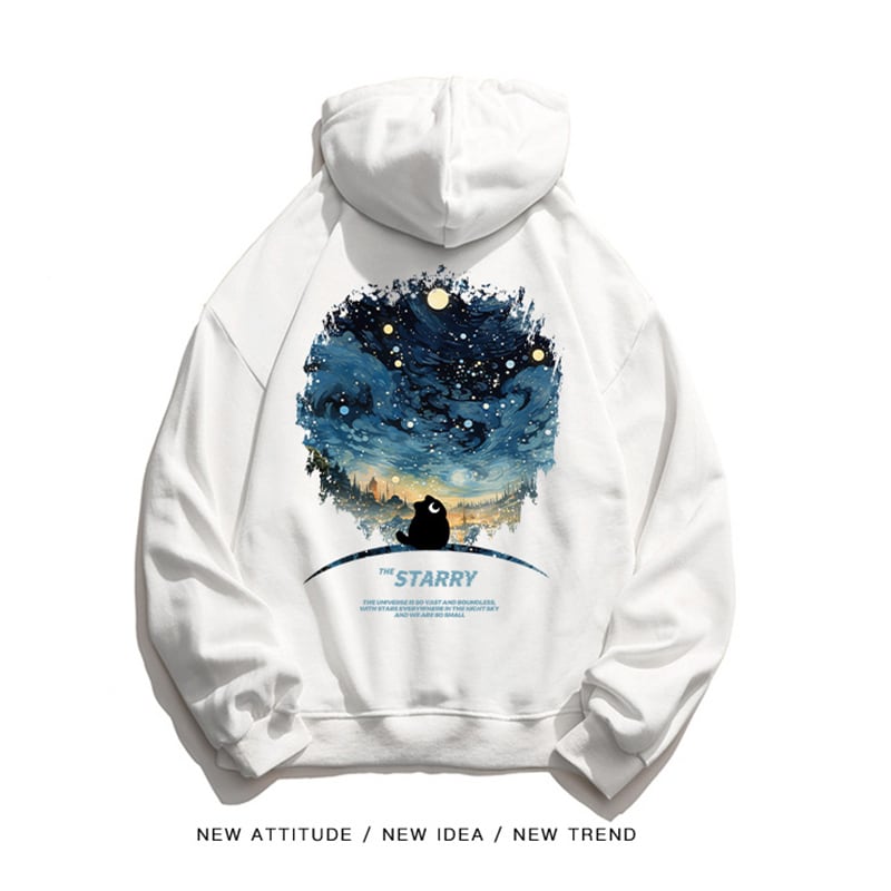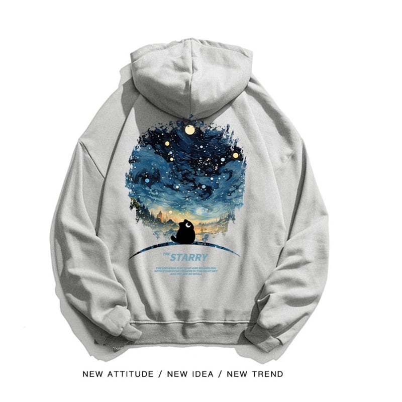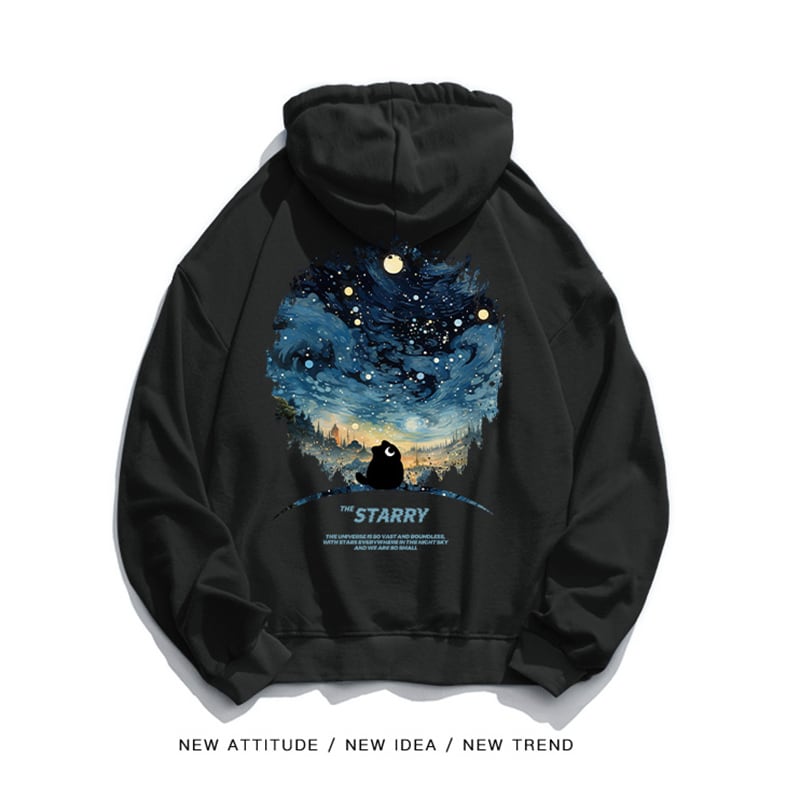 ☼暖かい星空猫パーカー!【MAIBU---猫シリーズ】★パーカー★ 裏起毛 4color トップス 男女兼用 メンズ カートゥーン 猫 猫柄 ねこ ネコ 星空